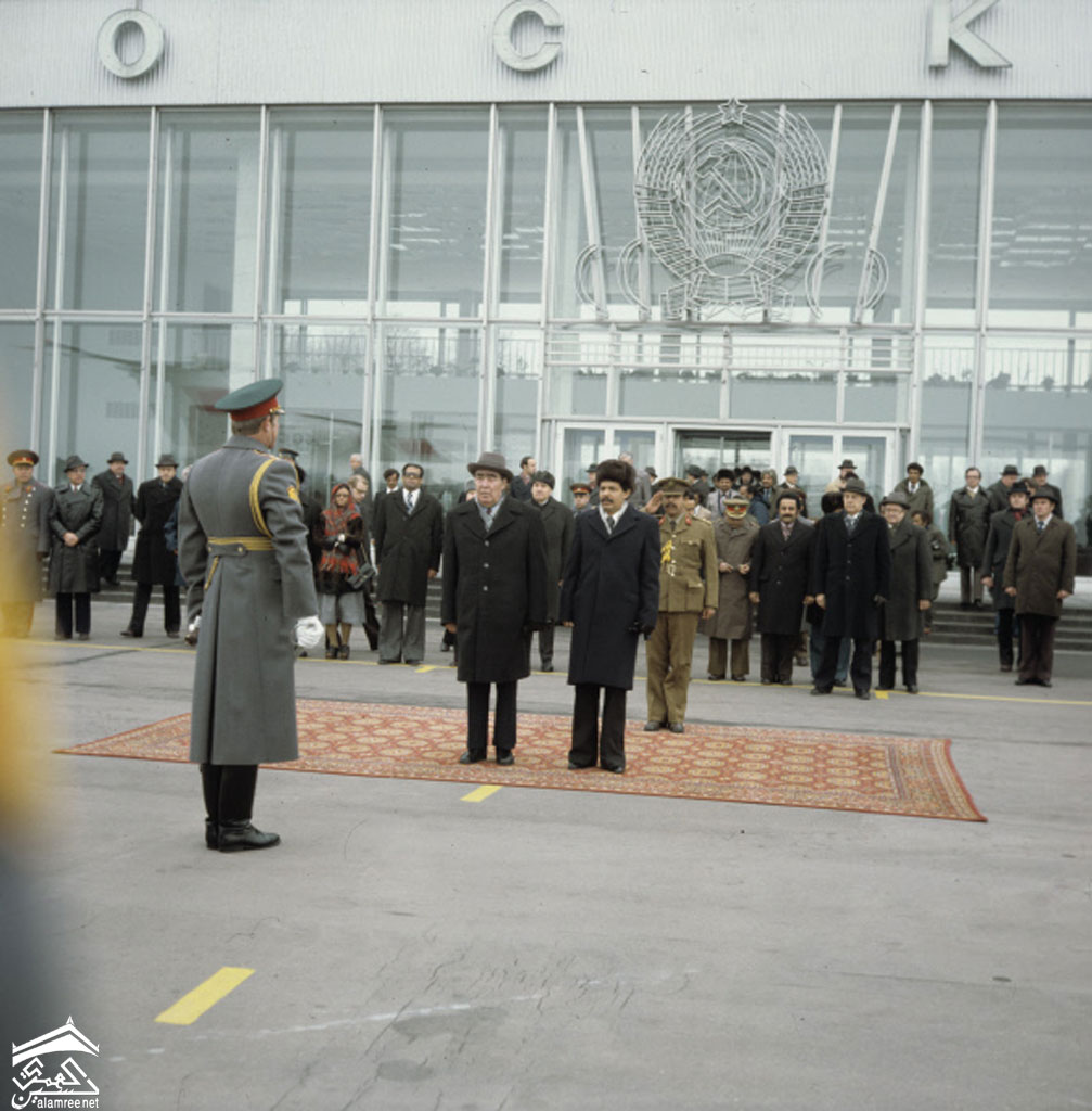 محمد مصافحا ليونيد بريجنيف في مطار موسكو |