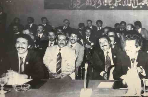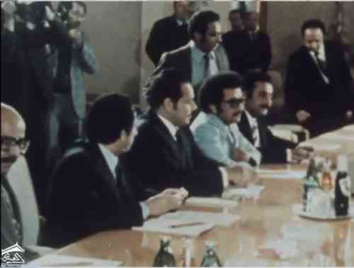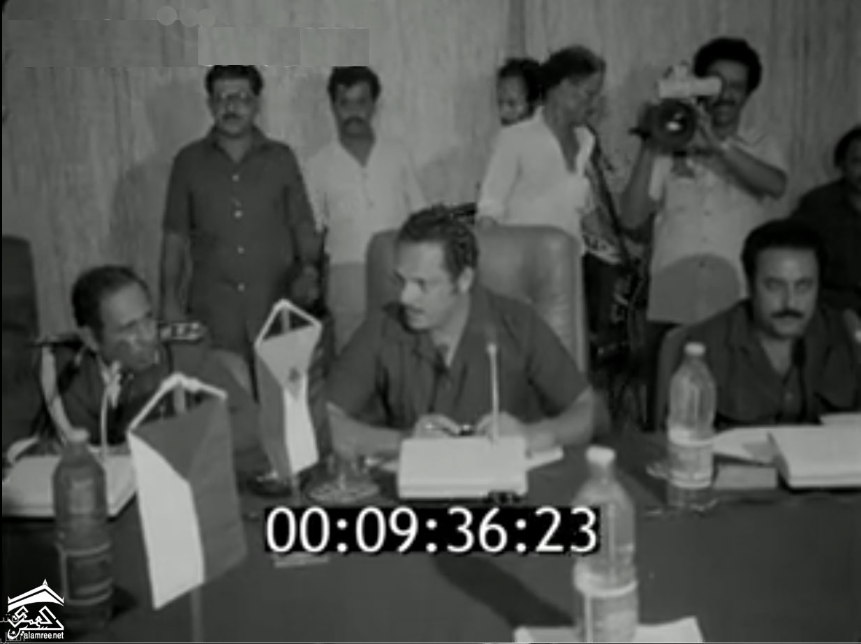 عبدالفتاح اسماعيل وسالم صالح محمد وفد اليمن الديمقراطي ووفد الجمهورية العربية اليمنية برئاسة علي عبدالله صالح في لقاء الكويت الذي جرى بعد حرب عام 1979 بين الشطرين