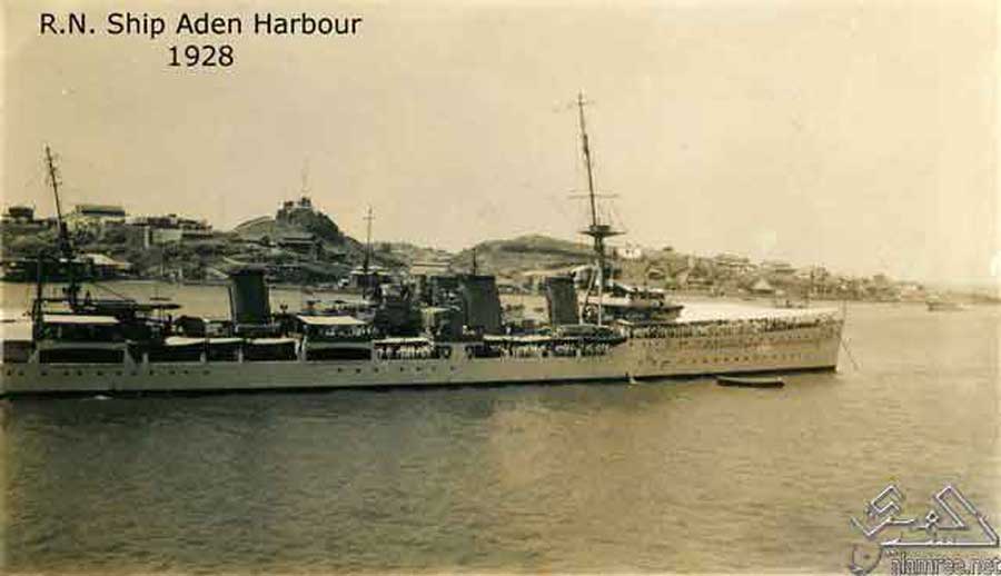 بارجه حربية بريطانية داخله مينا عدن عام 1928