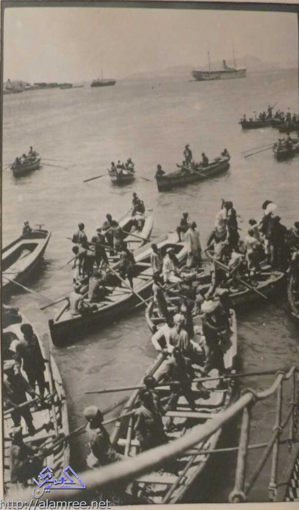 صوره لتجار البامبوت يعرضون بعض السلع التجارية لبحارة البواخر التي تدخل ميناء عدن