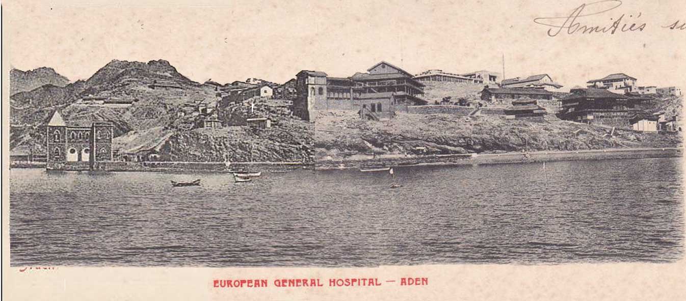 صورة مركبه من صورتين لنفس الموقع ، مستشفى الاوروبي العام اقصى اليمين ولاحظ البحر امتداده الى حافة الجبل ولاحظ البناء اقصى يسار الصورة فقد ازيل في نفس الفتره تقريبا