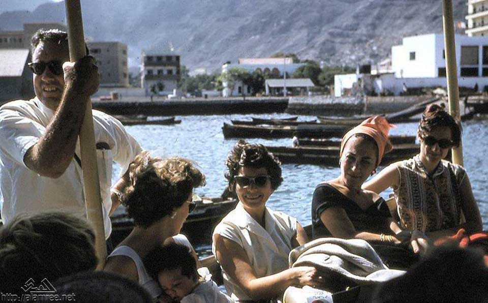 فوج من سياح الباخره اورينت في قارب لزيارة عدن |