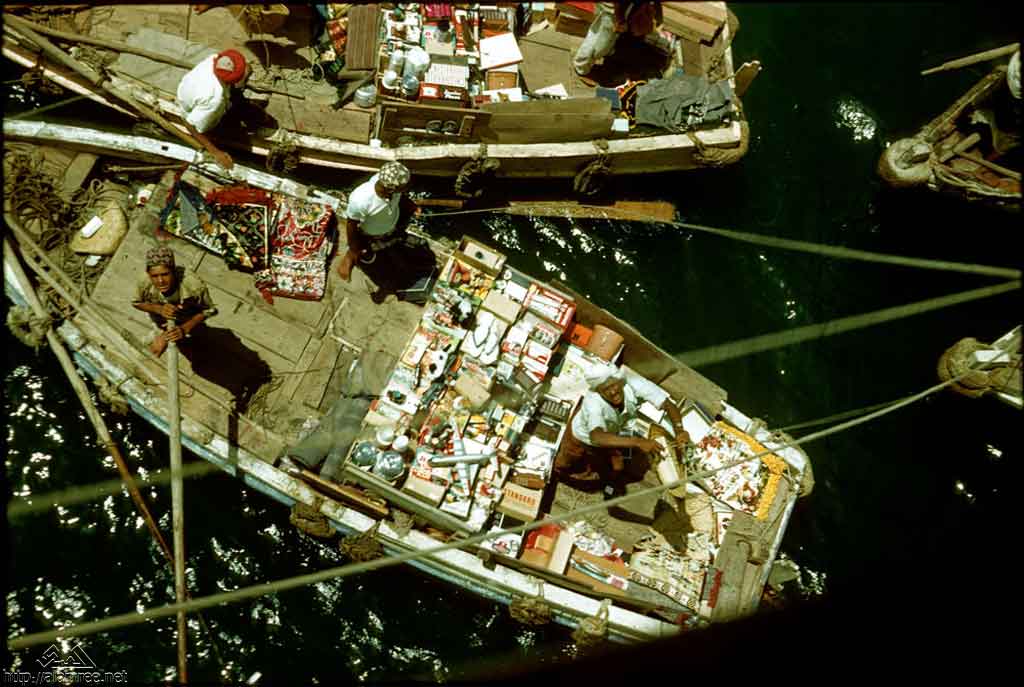 تجار البامبوت يبيعون مختلف البضائع للبحاره الذين لم يتمكنوا من النزول