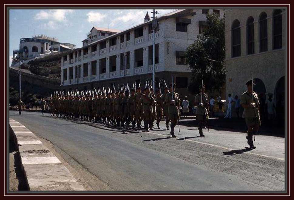 عرض عسكري لقوات الاحتلال البريطاني في الشارع المؤدي لمقر الحاكم