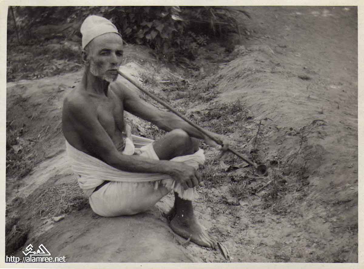 احد الشيوبه يدخل البايب التقليدي في احدى حدائق التواهي منتصف الاربعينيات