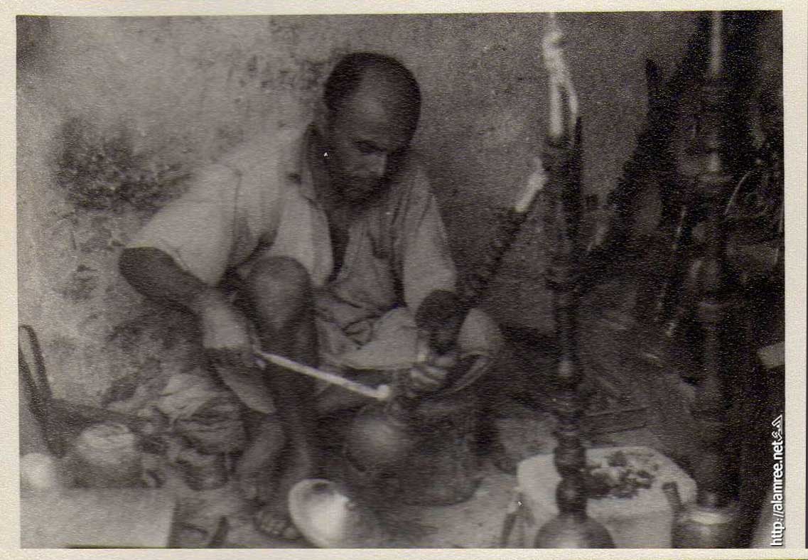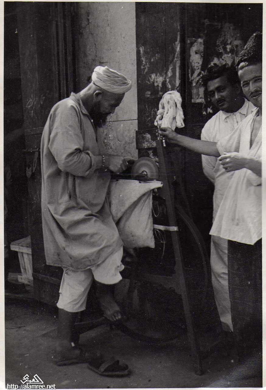 عدن كريتر احد الهنود يقوم بعملية سن السكاكين في الاربعينيات