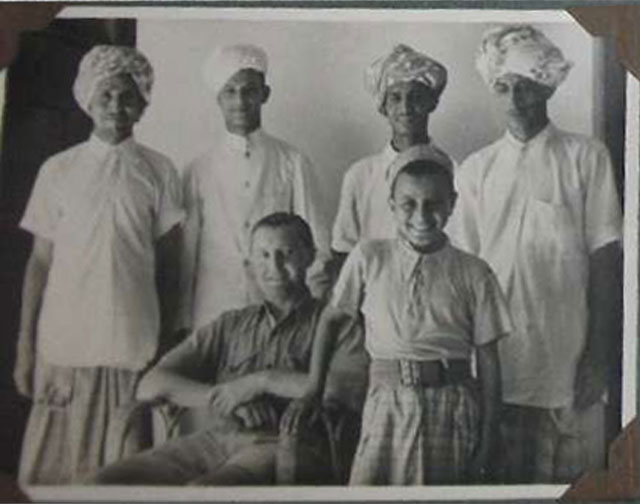 صوره تذكاريه لاحد المسئولين البريطانيين مع مجموعه من العامليه المحليين