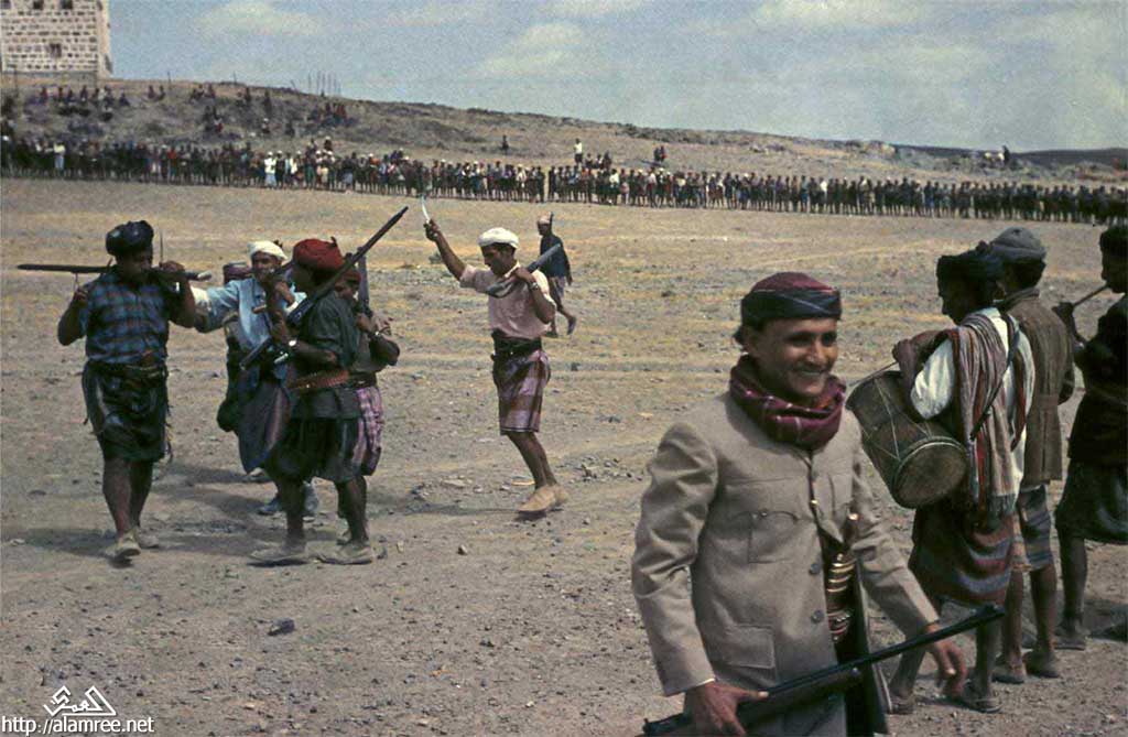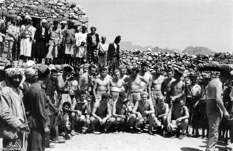 صوره للقوات البريطانيه في قبضة رجال القبائل في تعز عام 1963م وقد