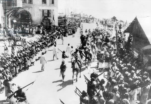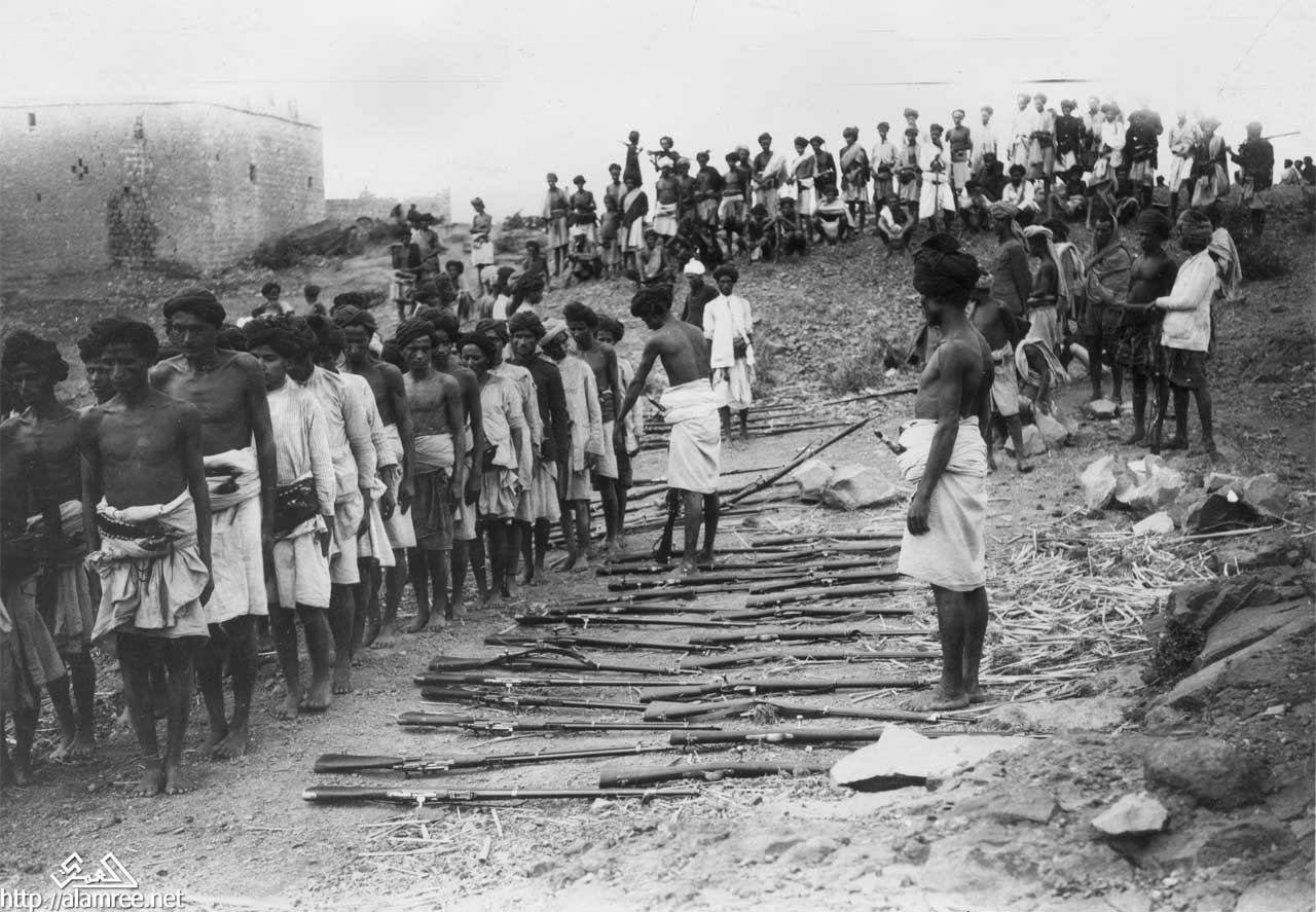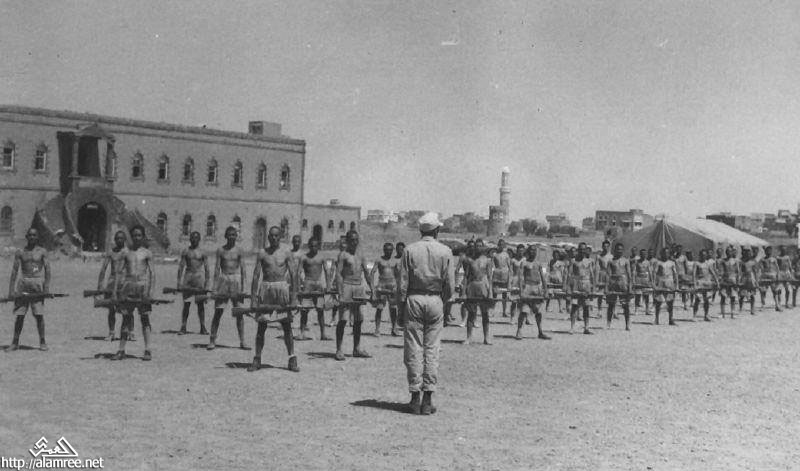 صوره نادره ولاول مره تعرض لاول كتيبة مشاه يمنيه عام 1921مصورة لحشد من الناس في البيضاء |