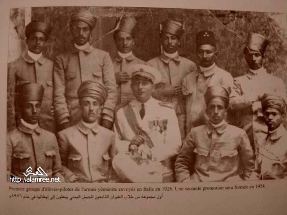 التاريخ العسكري لليمن للكاتب سلطان ناجي وهو بعثة الطيران: . أنه تمخض عن المعاهدة اليمنية الإيطالية سنة 1926م بأن تقوم الأخيرة بتدريب عدداً من اليمنيين في سلاحها الجوي بغرض تشكيل نواة للقوات الجوية في اليمن. وبعد فترة ليست قصيرة ، تخرج من سلاح الطيران الإيطالي عدداً من الطيارين اليمنيين الذين تدربوا تدريباً رفيعاً على الطيران الحربي وأشاد بهم الضباط الإيطاليين لإستيعابهم السريع على التدريب ، ومهارتهم الرائعة في قيادة الطائرات الحربية الإيطالية الحديثة أنذاك ، وتذكر المصادر الإيطالية العسكرية أنّ هؤلاء الطيارين اليمنيين قاموا بعدة
