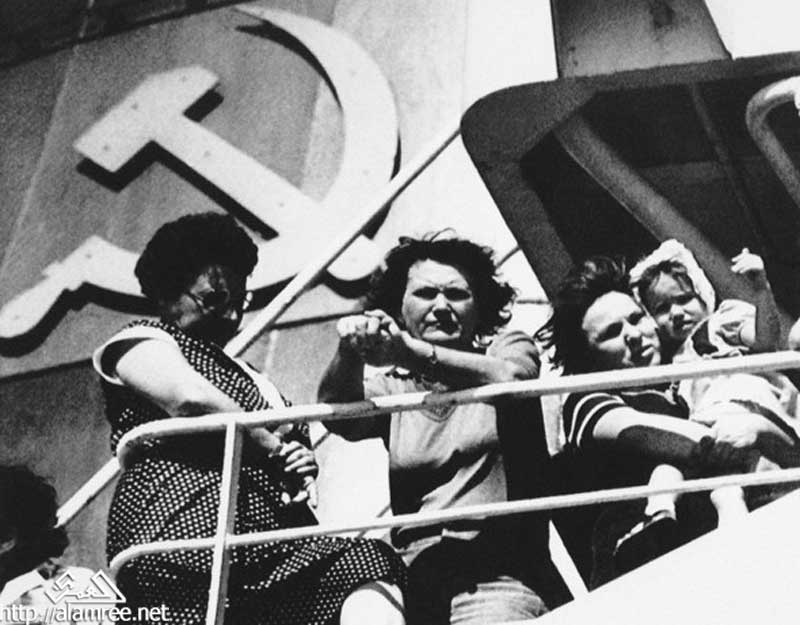 مجموعه من الروس الهاربين على ظهر احدى