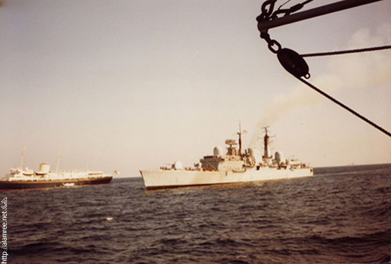 وعلى سطح السفينة الحربيه البريطانيه يتم