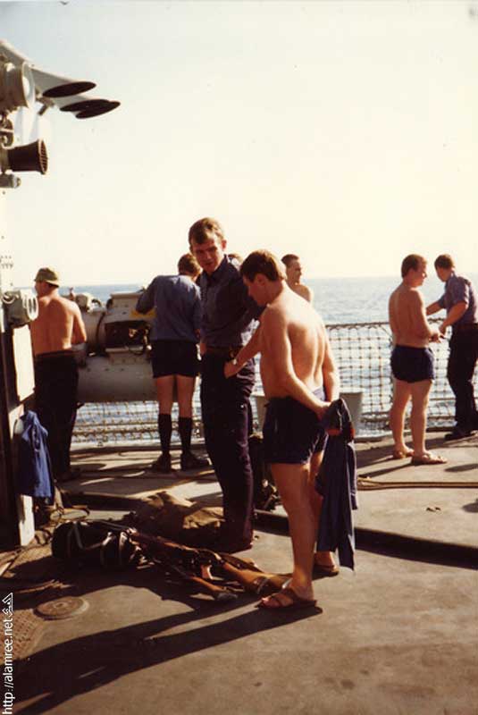 مجموعة من الاسلحله على ظهر السفينه