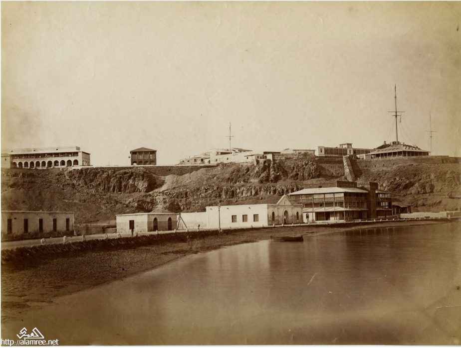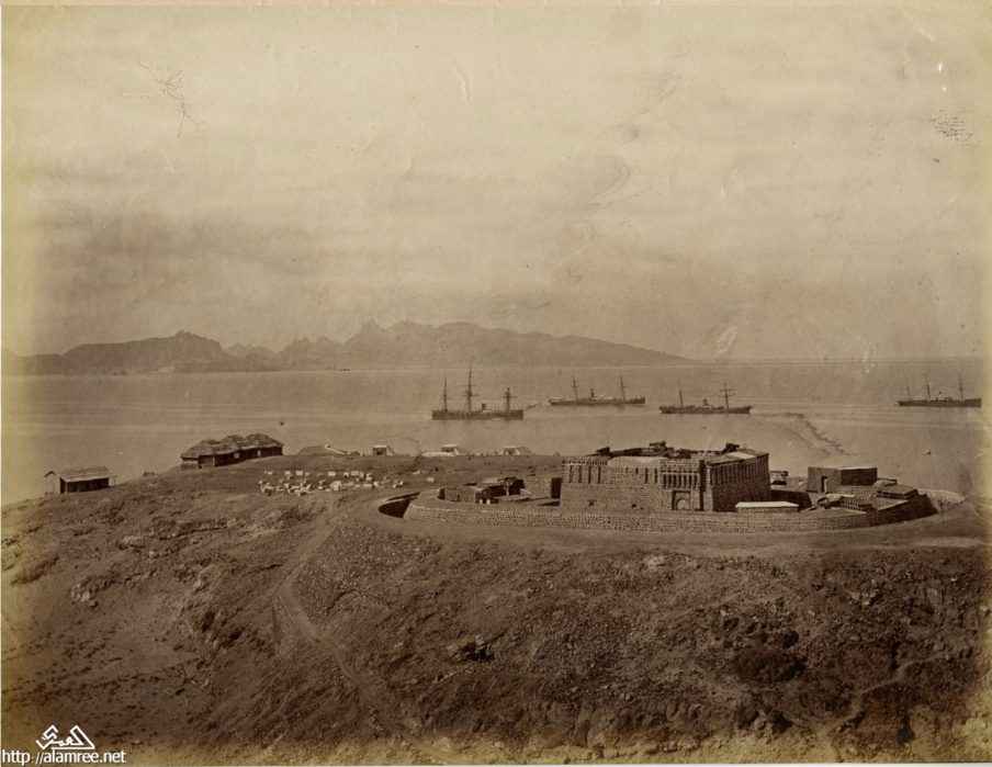 من الصور النادره للقلعه المطله على مدخل ميناء عدن من اتجاه التواهي وهي من عهد الاتراك