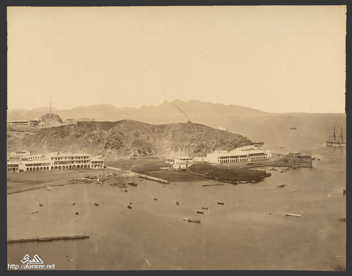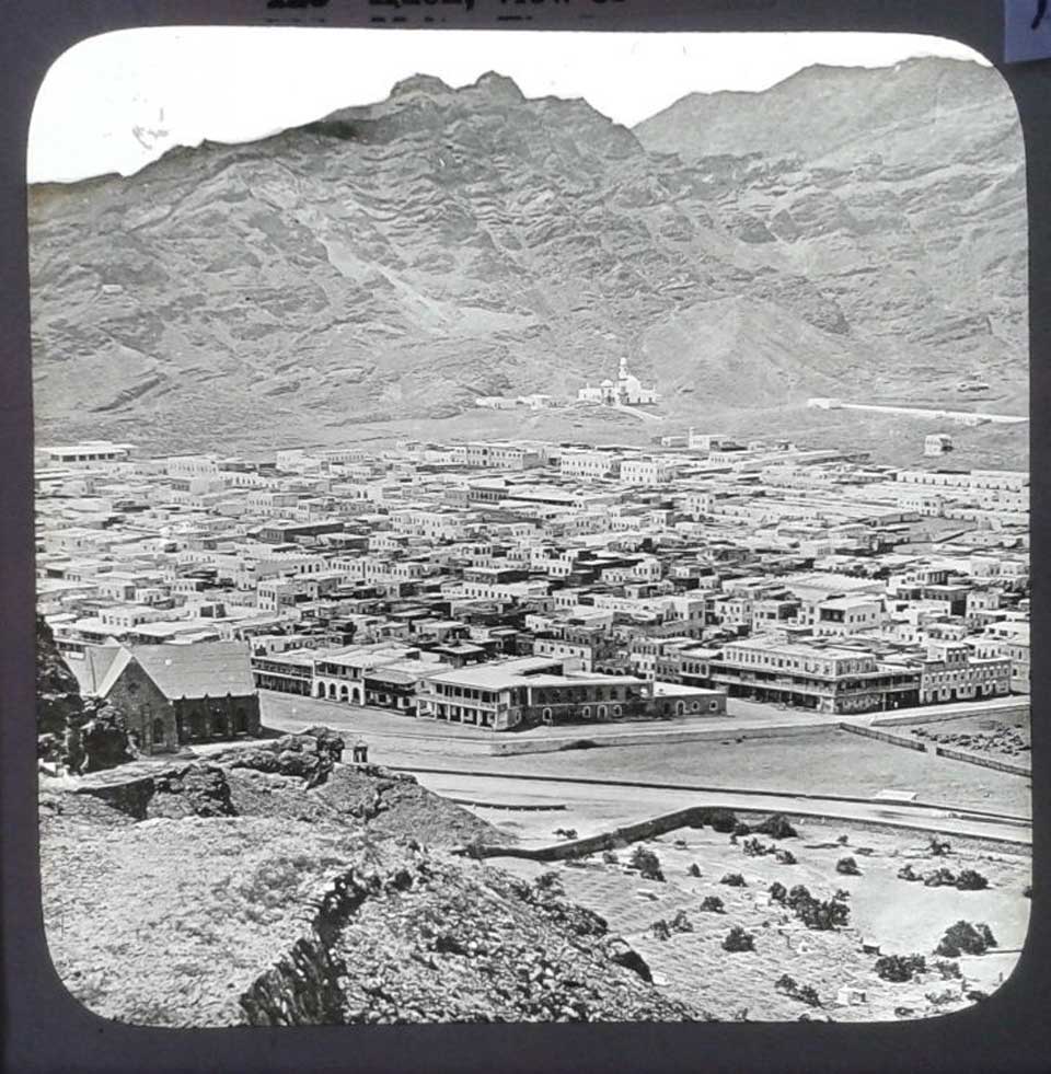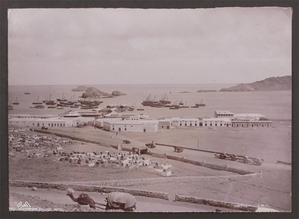 صوره للمعلا ومقبرة اليهود يسار وفي الخلفيه ميناء المعلا الذي يعتبر مركز