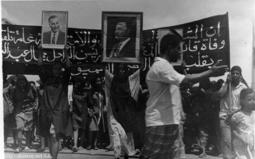 المظاهرات ترلفع الشعارات الثوريه وصور الزعيم جمال عبدالناصر في ستينيات