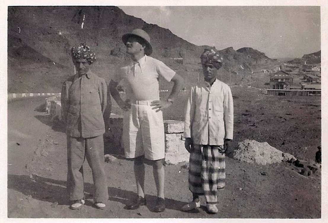 مجموعه من الهنود بالقرب من رجال الهجانة التابعين لجيش محمية عدن |