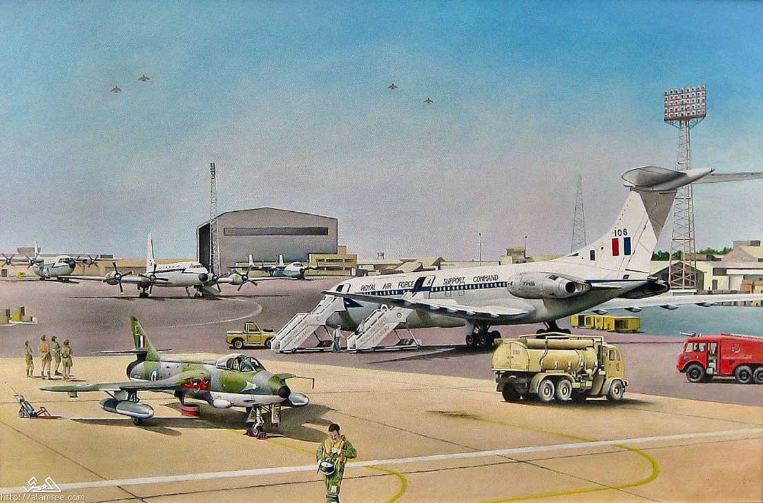 رسمه لمطار عدن العسكري في ستينيات القرن الماضي |
