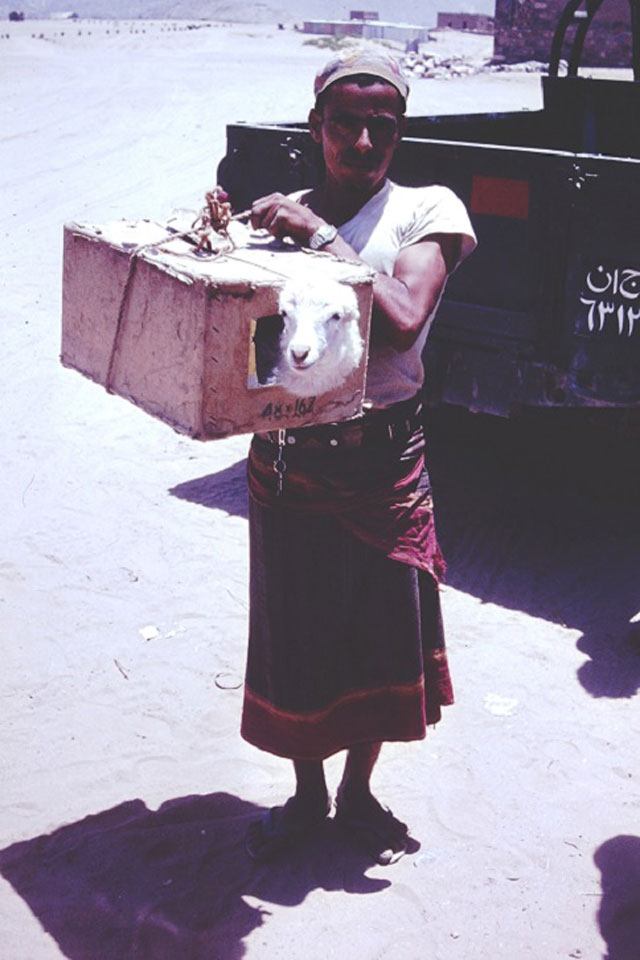 احد افراد جيش محمية عدن يستلم كبش العيد مرسل من قريته |