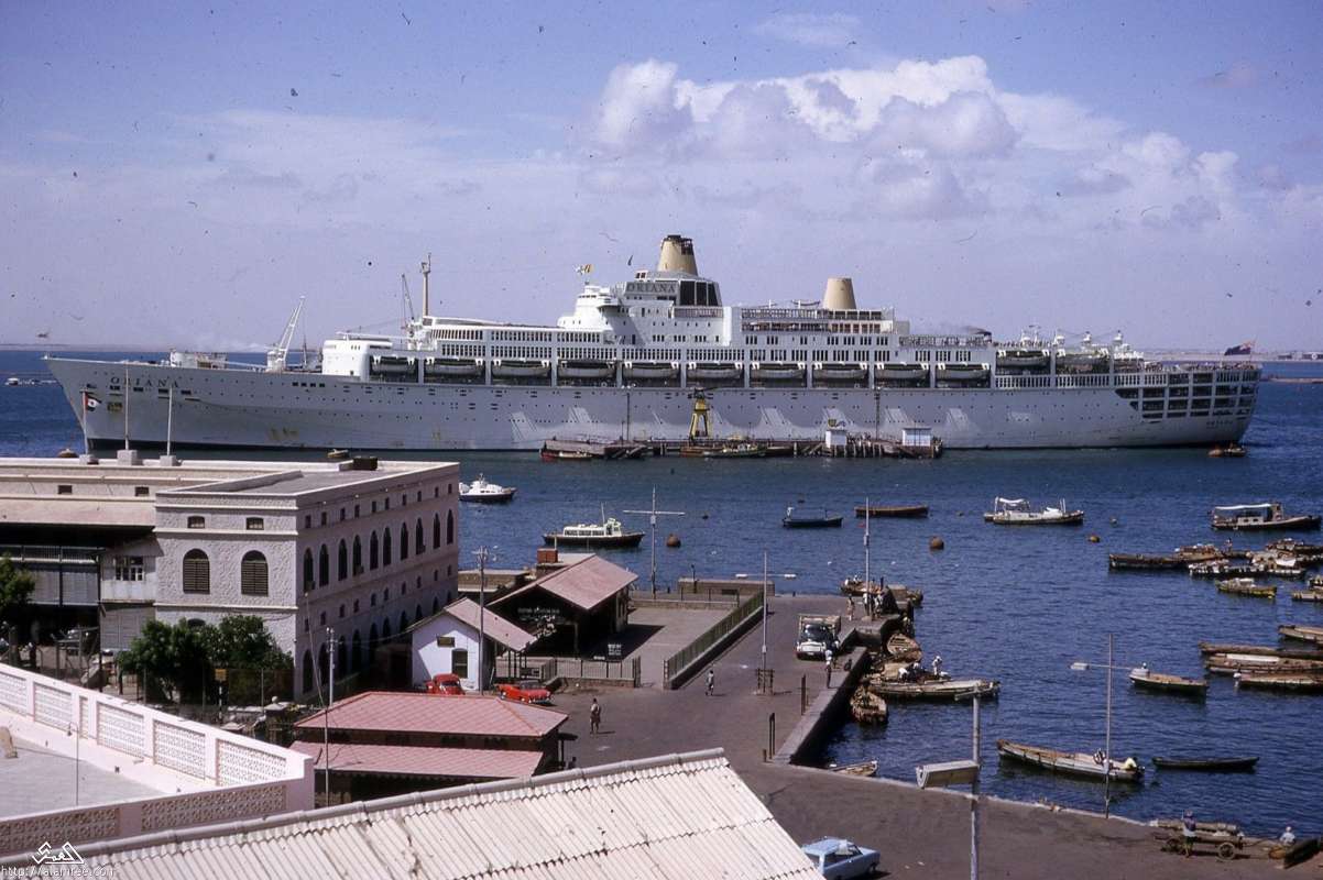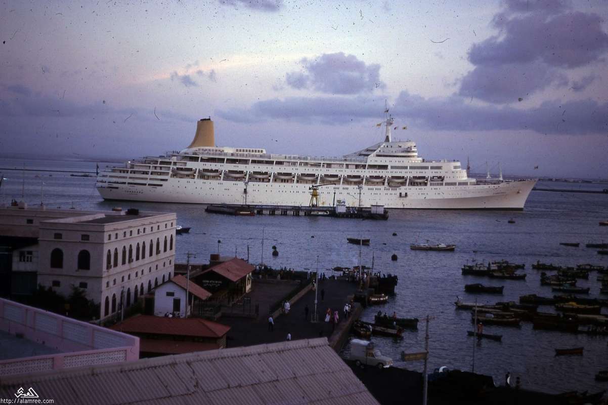 احدى السفن السياحيه في ميناء عدن التواهي في ستينيتات القرن الماضي |