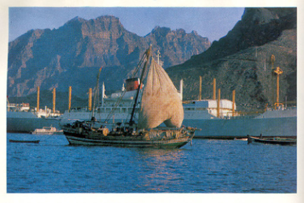 سفينة شراعيه خارجه من ميناء عدن في الستينيات |