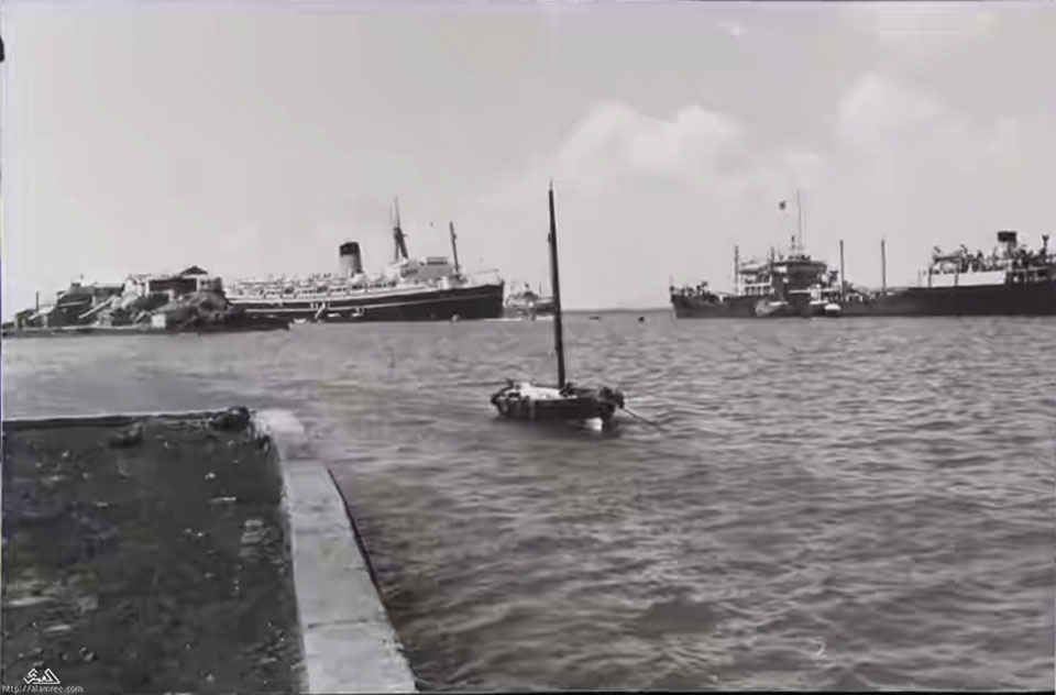 ميناء عدن التواهي في الخمسينيات بالقرب من كاسر الامواج |