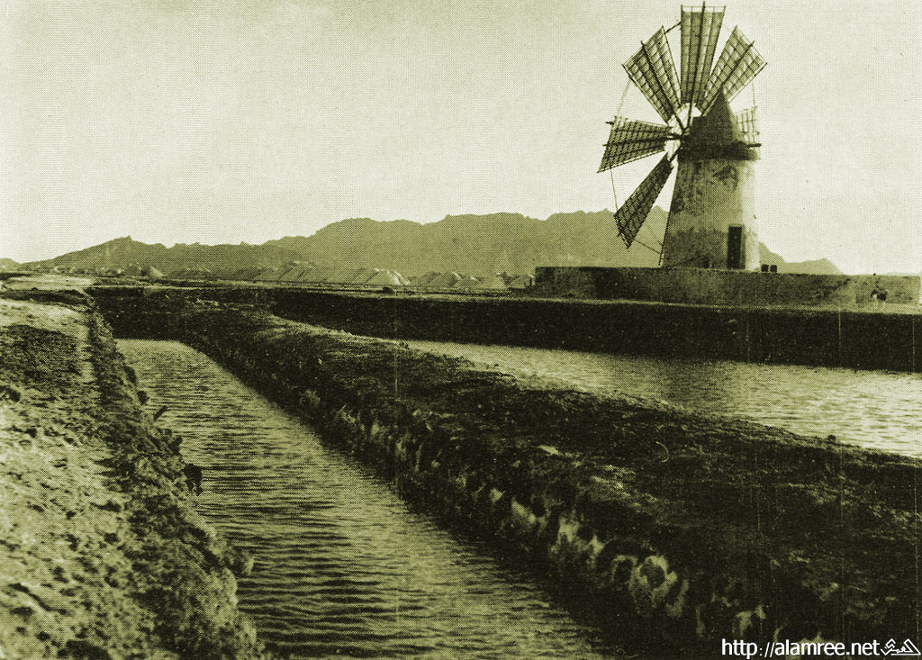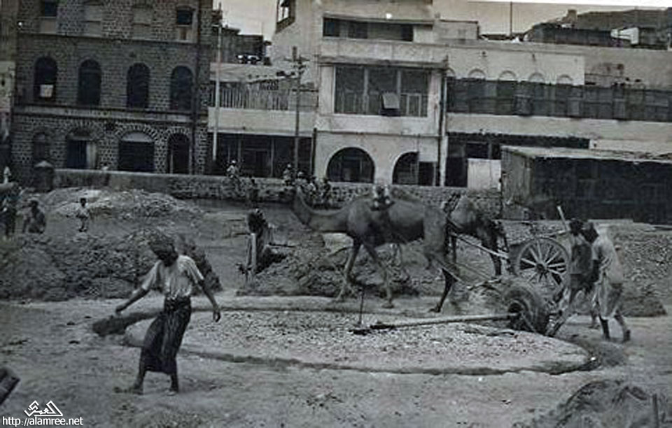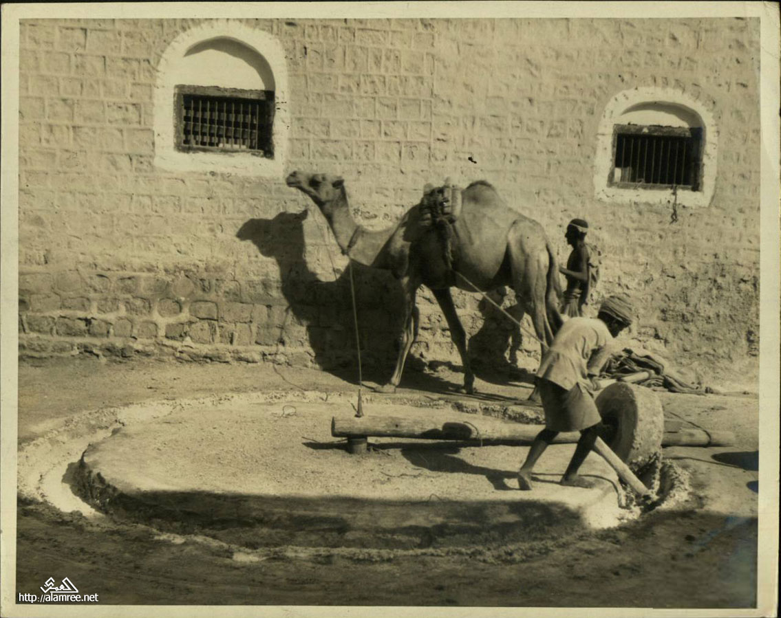 جمل يقوم بطحن مادة البوميس لاستخدامه في