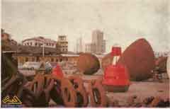 عوامات ضخمه تستخدم لتثبيت البواخر داخل الميناء |