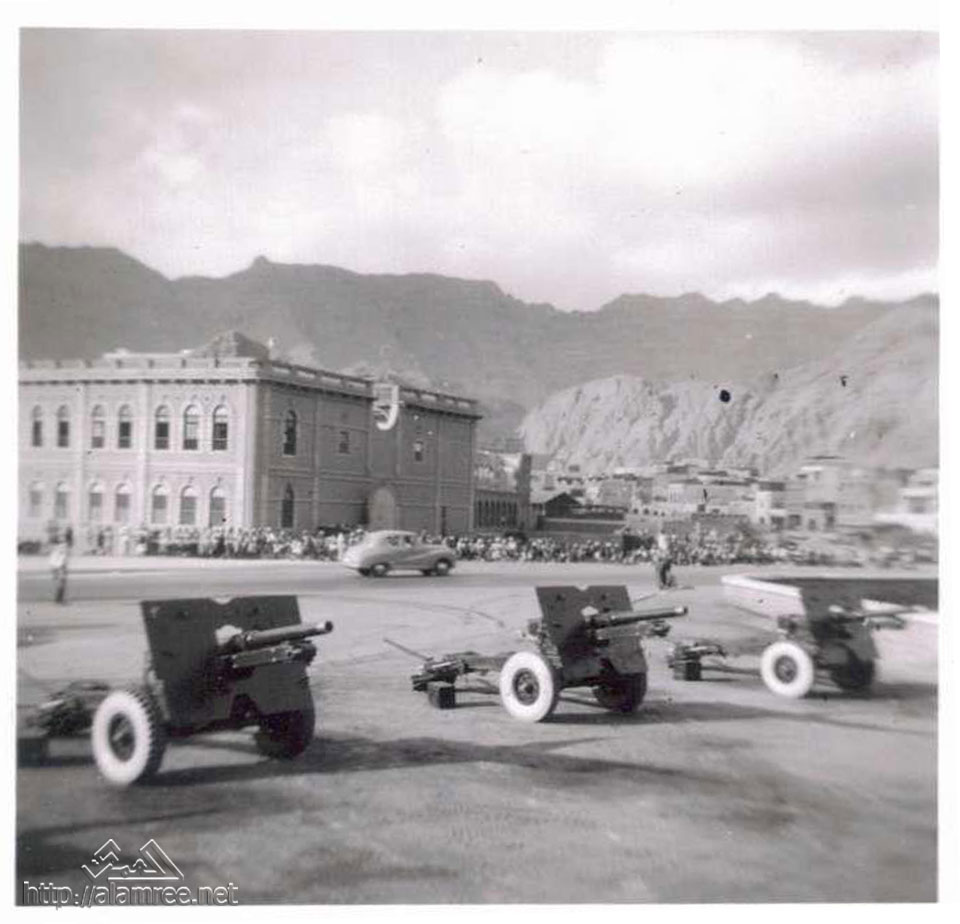 بعد انتهاء الحرب عام 1948 عدن مدفعيه التشريفات تطلق 9 طلقات احتفاء بنهاية الحرب العالمية الثانية |