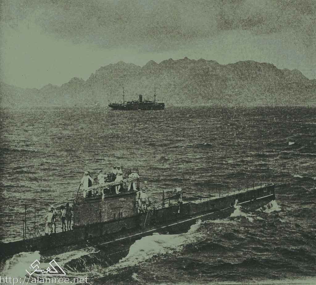 الغواصه الحربيه ايه إي2 قبالة شواطى عدن عام 1915 وهذه الغواصه شهيره