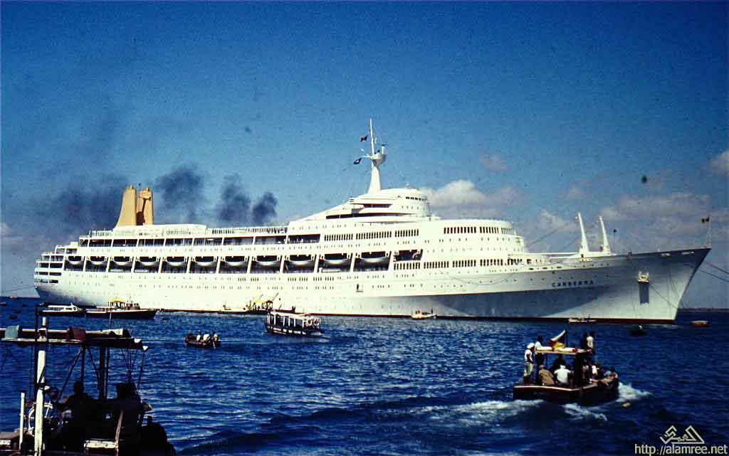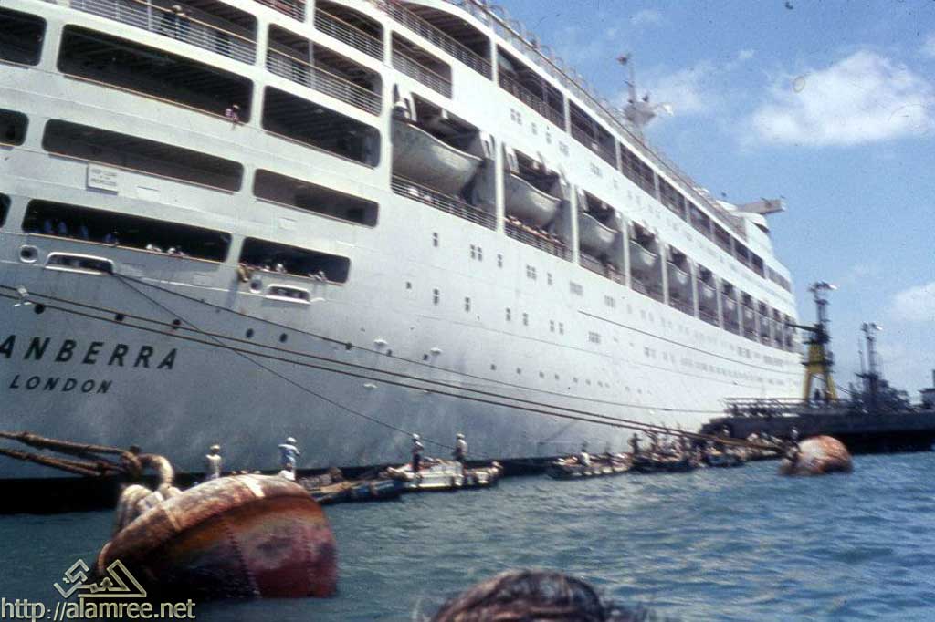 الباخره السياحيه كمبيرا في ميناء عدن في الستينات من القرن الماضي |