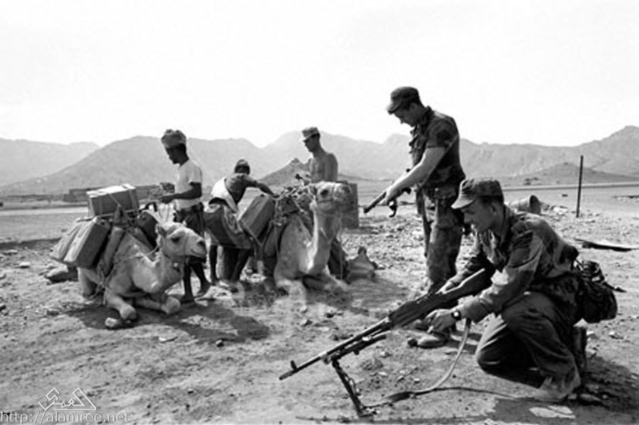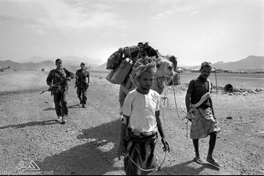 تفتيش احد الجمال بحثا عن اسلحه مهربه الى عدن في الستينات |