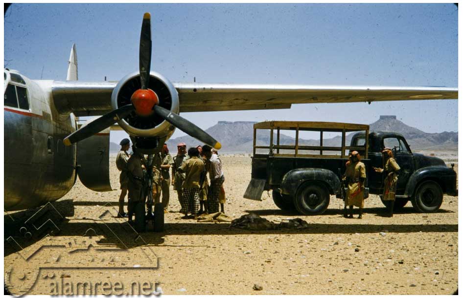 طائرة نقل تموينات جيش الباديه الحضرمي في الصحراء