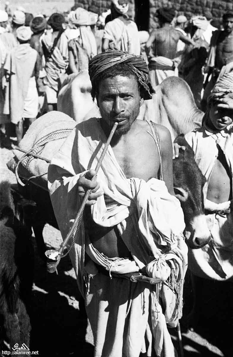 شرب الدخان عبر الغليون سوق الضالع عام 1945
