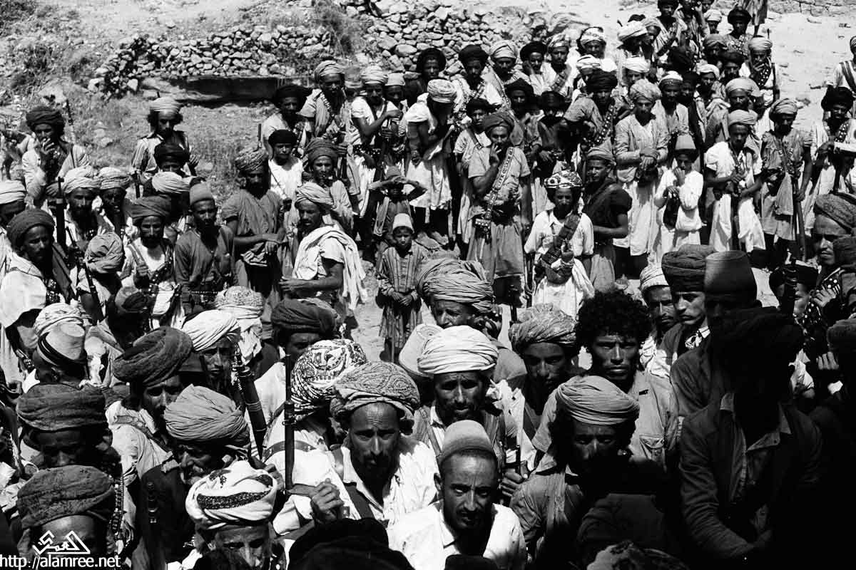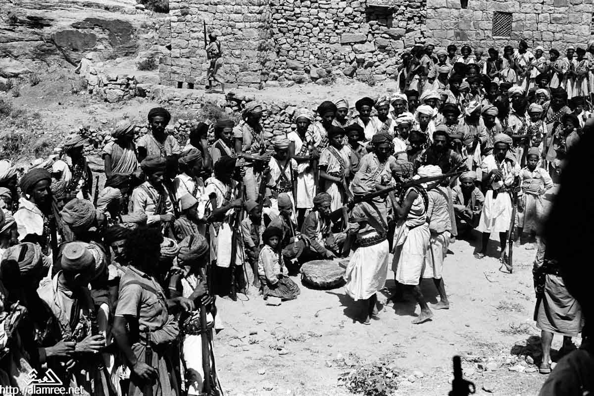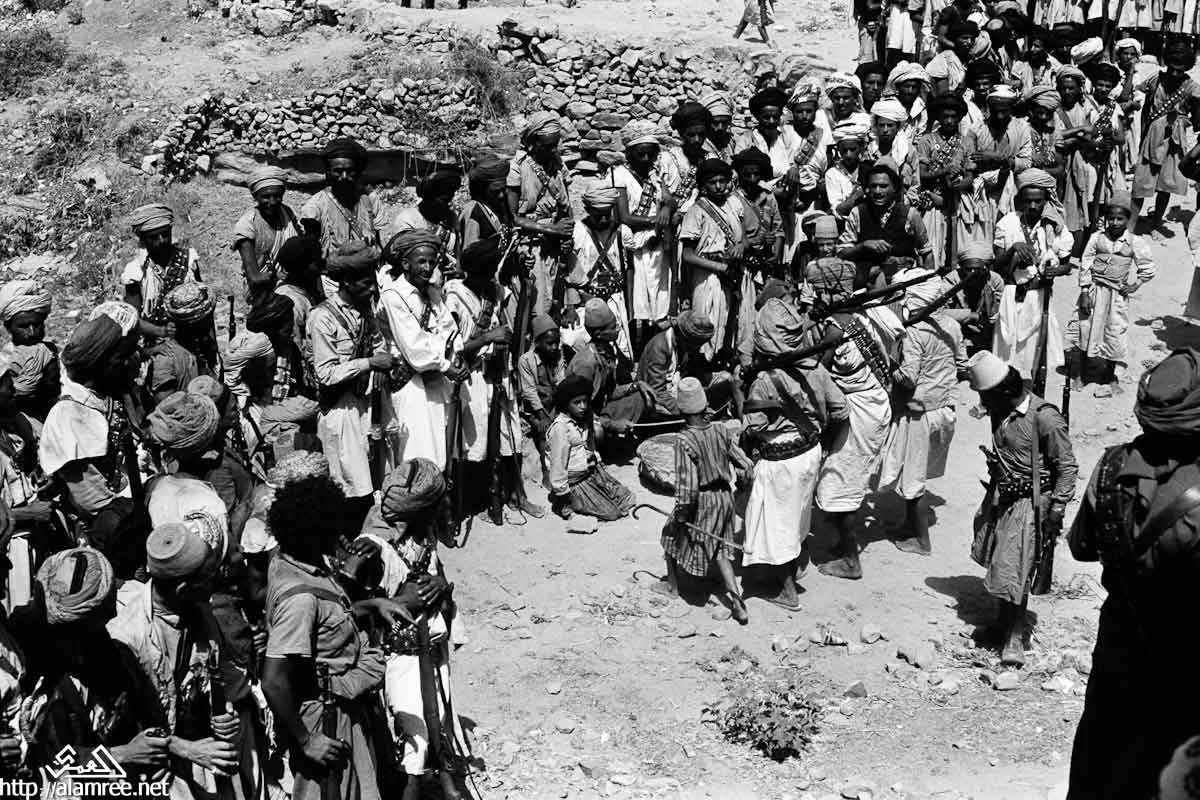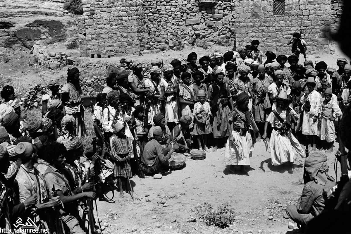صورة لشاب يحمل بندقية كبيرة ويرتدي قبعة مميزة، الماندولير حول صدره وخنجرا في حزامه