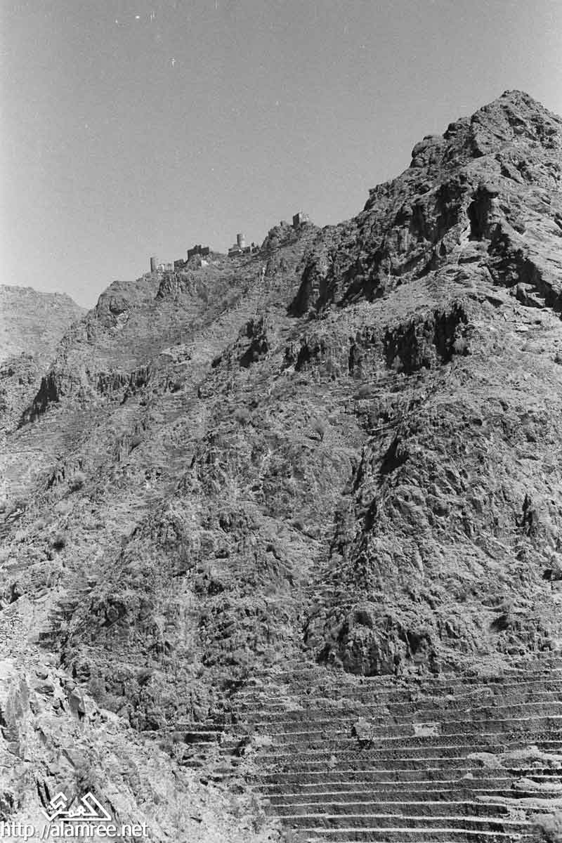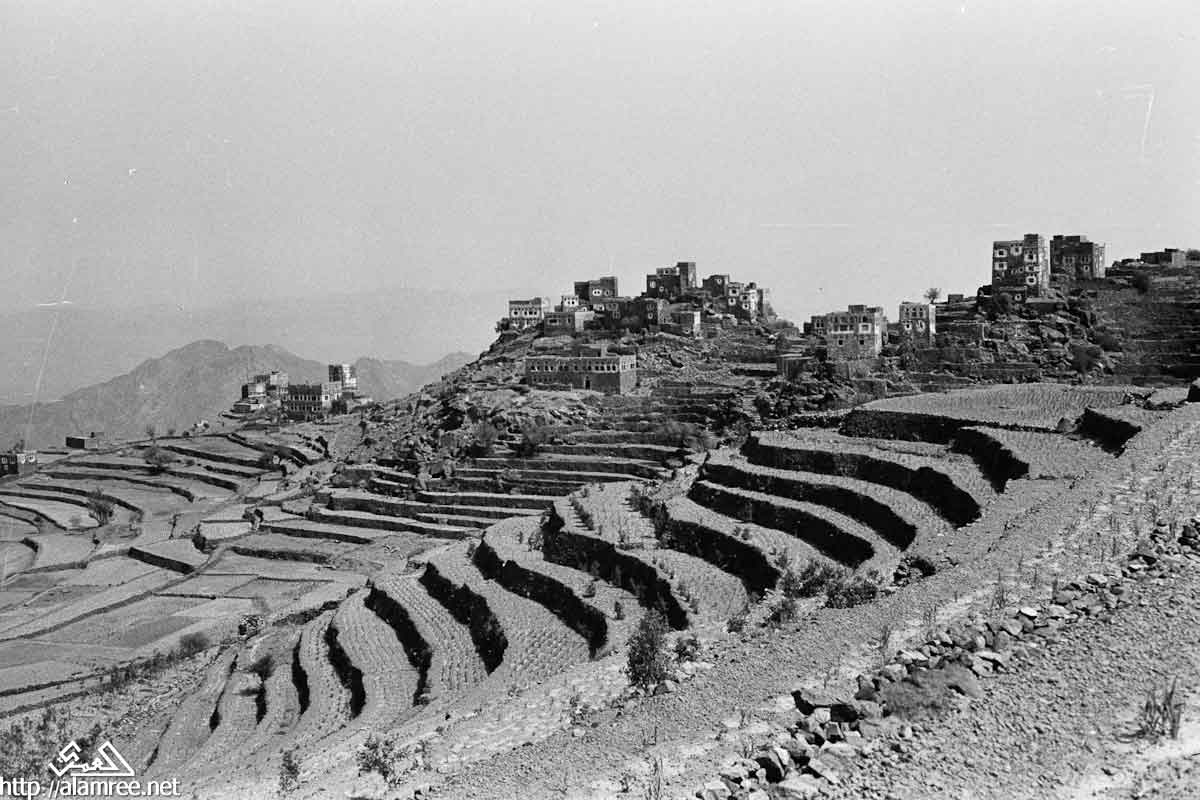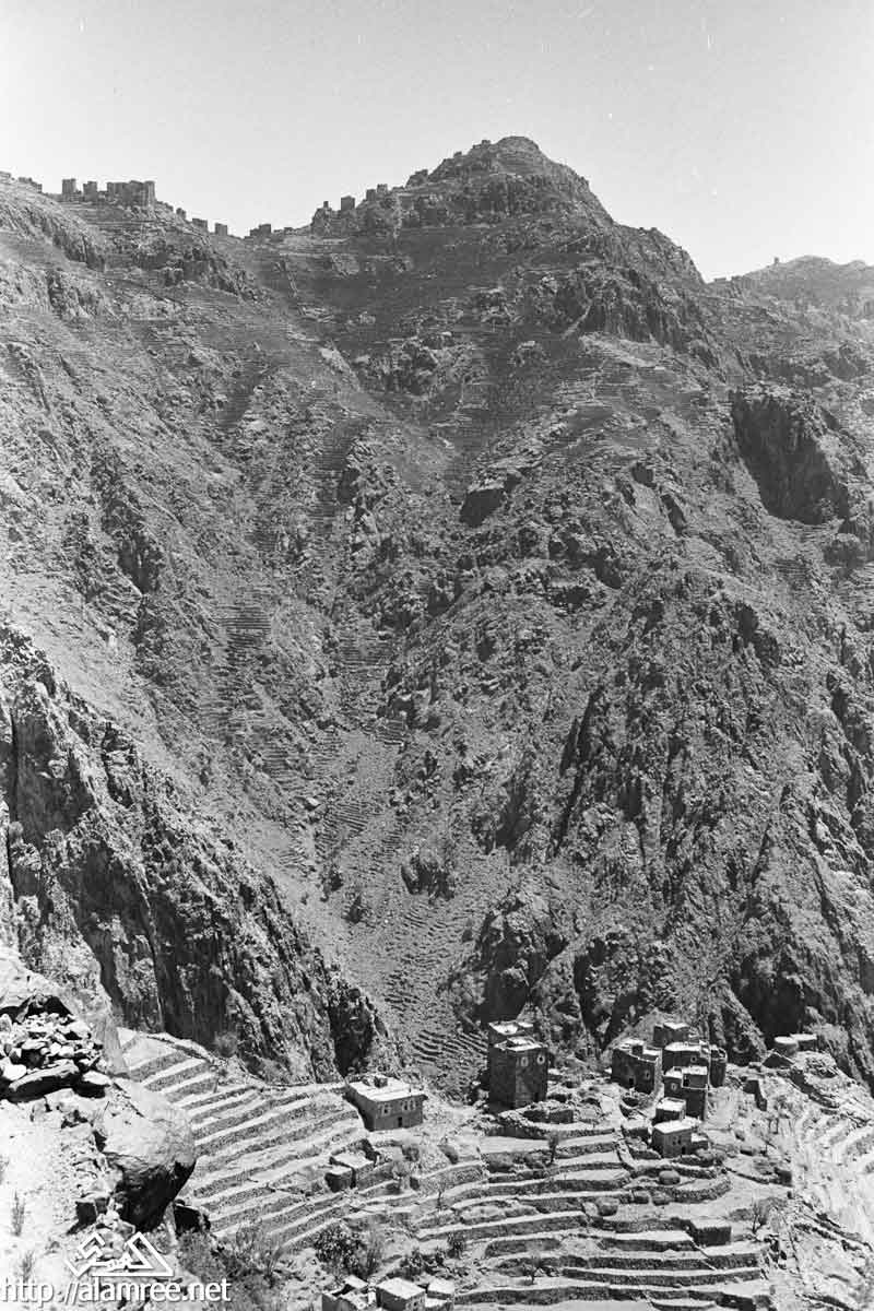 اجزاء من قرية مبنية على سفوح سلسلة جبال صخرية