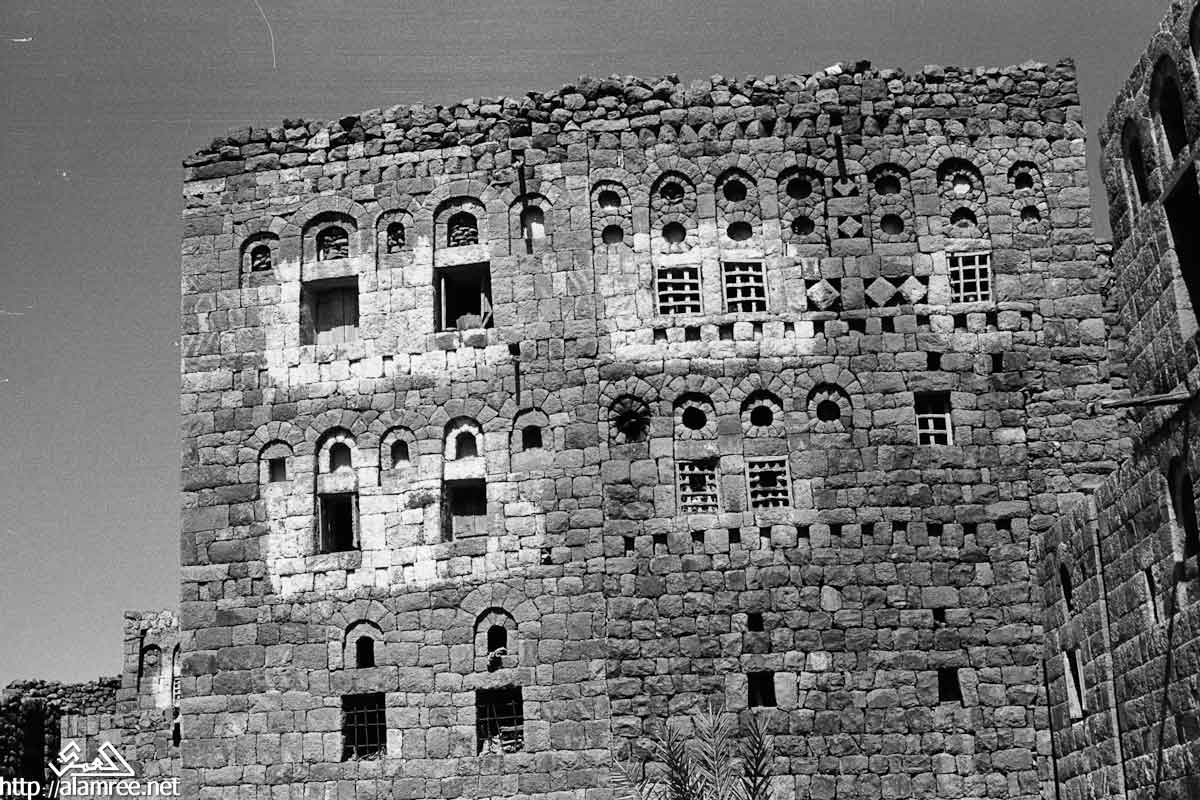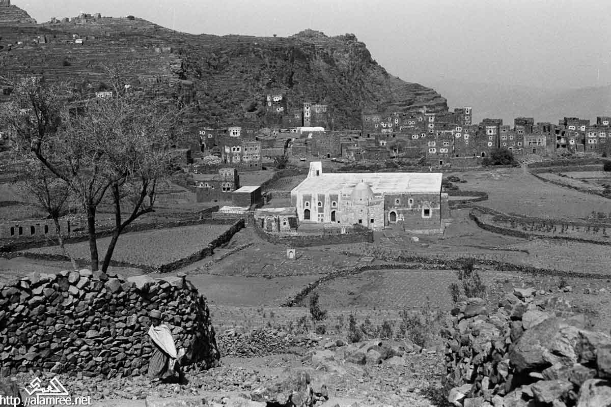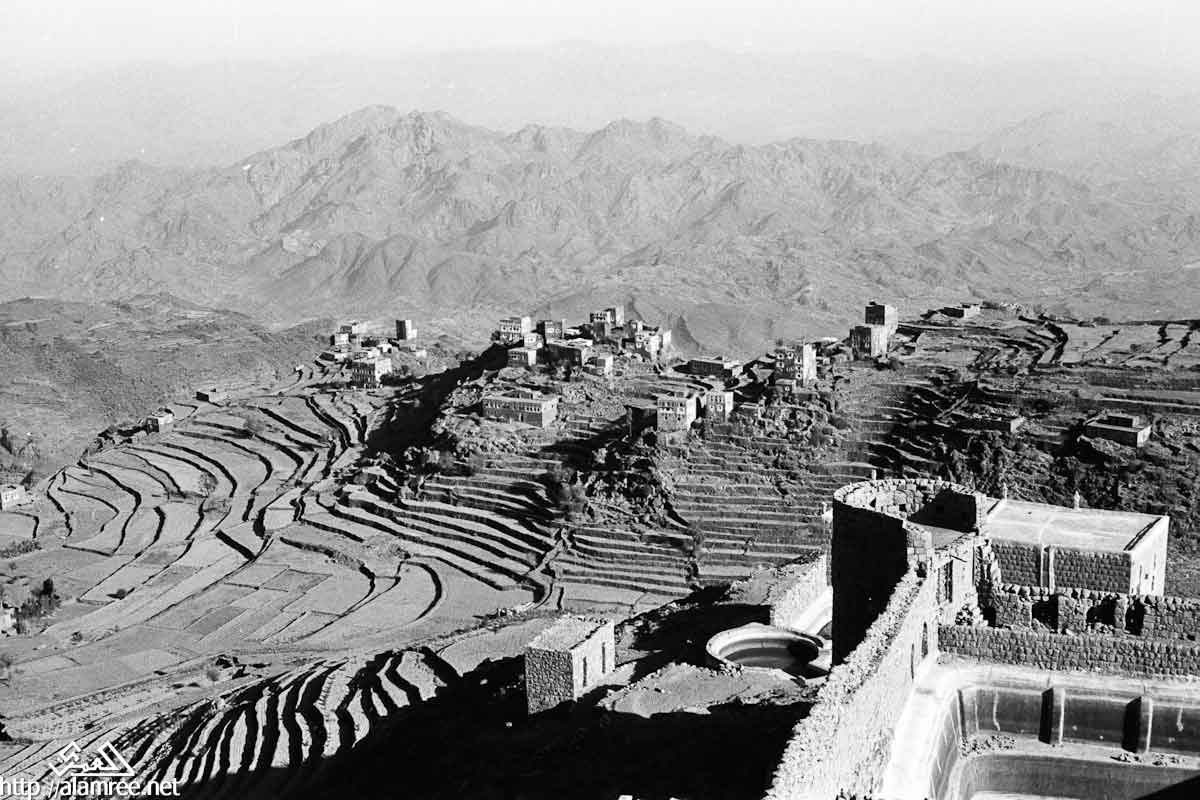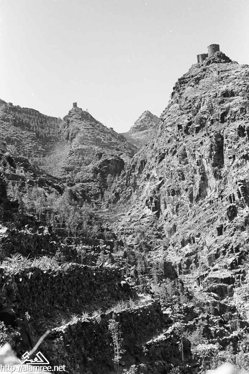 اجزاء من قرية مبنية على سفوح سلسلة جبال صخرية