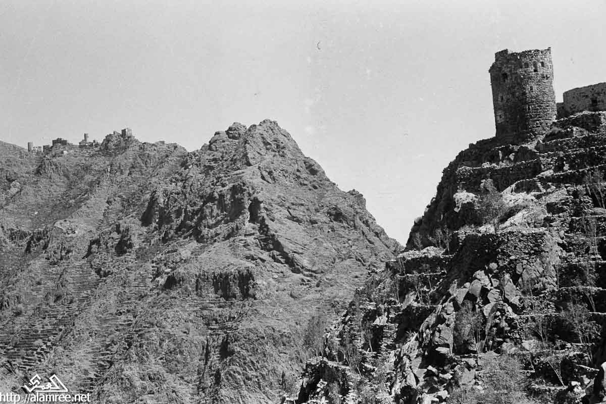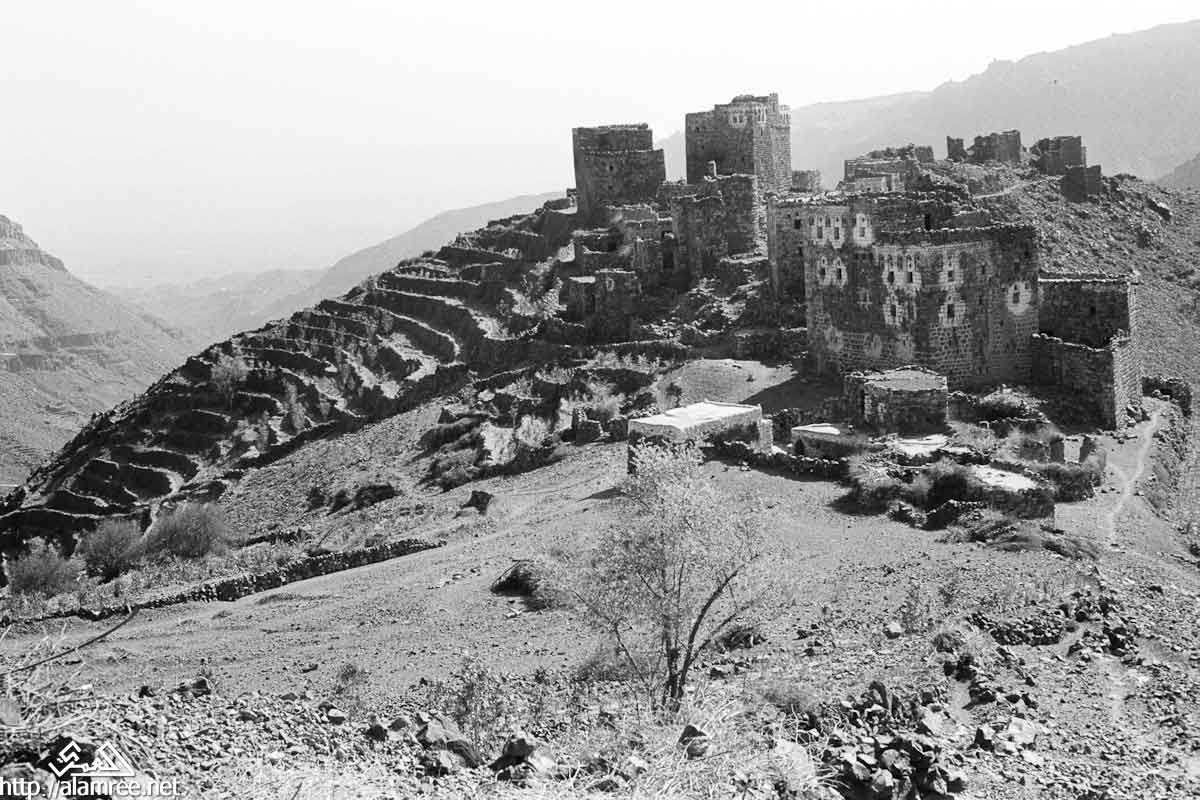 اجزاء من قرية على قمة أحد الجبال