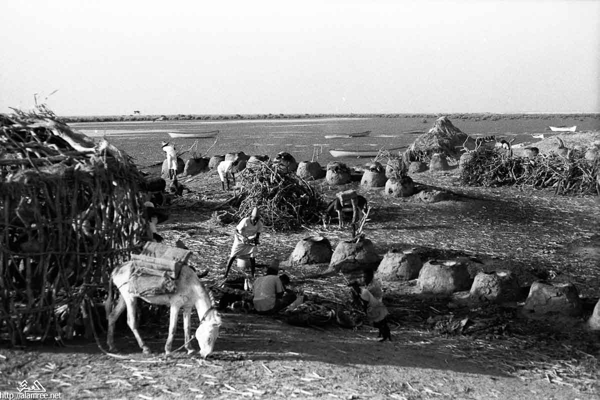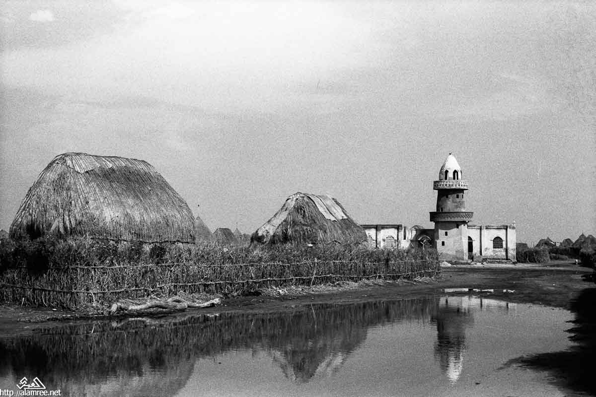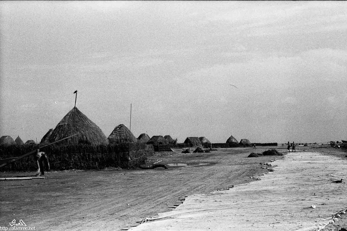 الحديده اللحيه عام 1977م ويرى بعض المباني المسقوف من القش