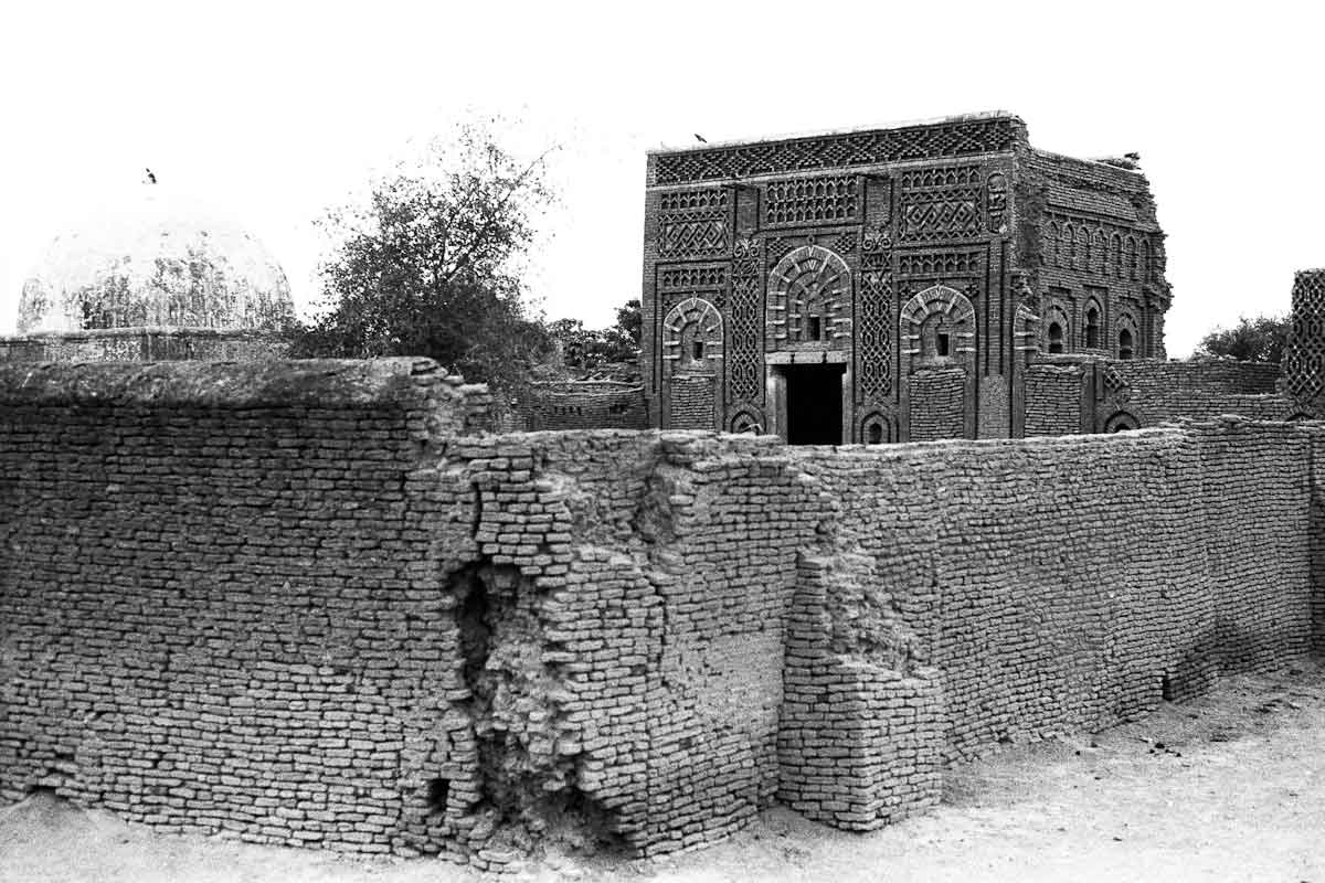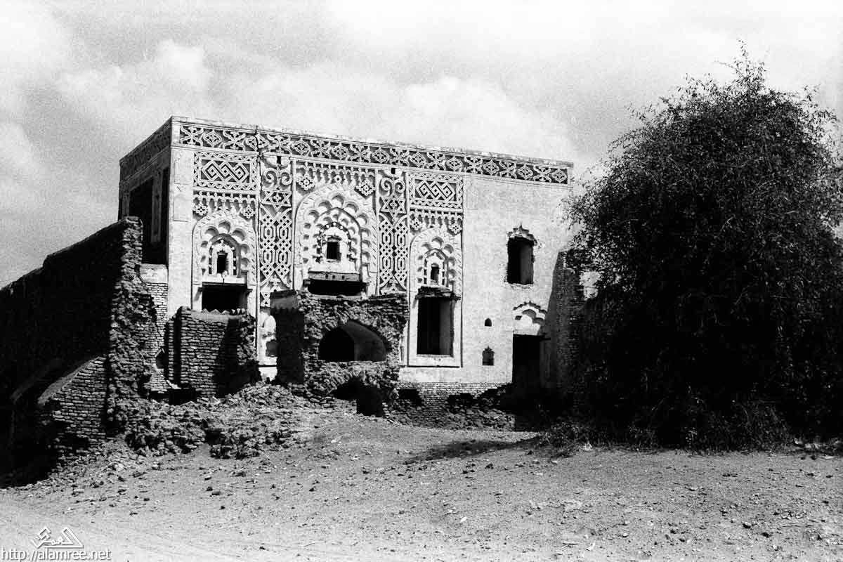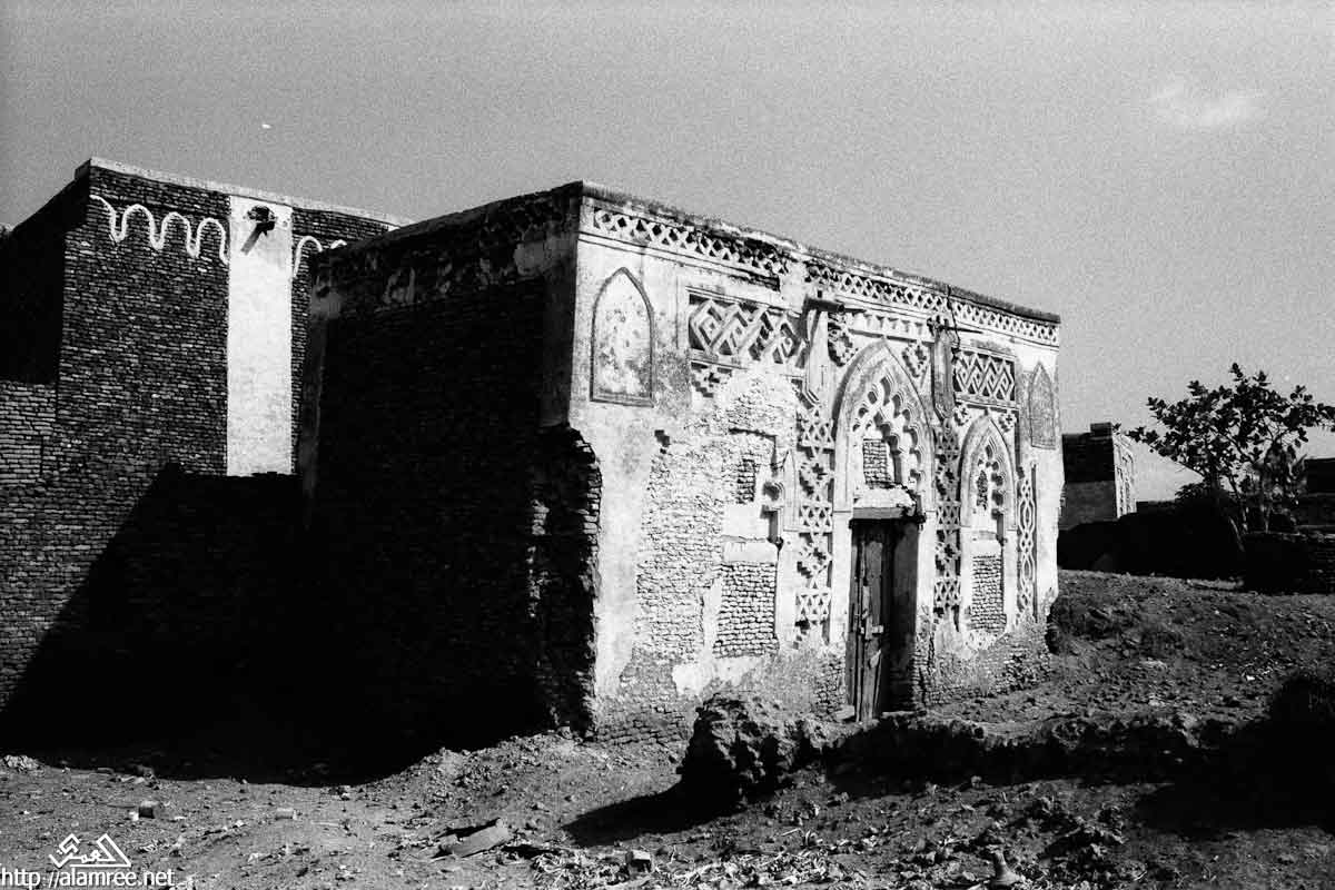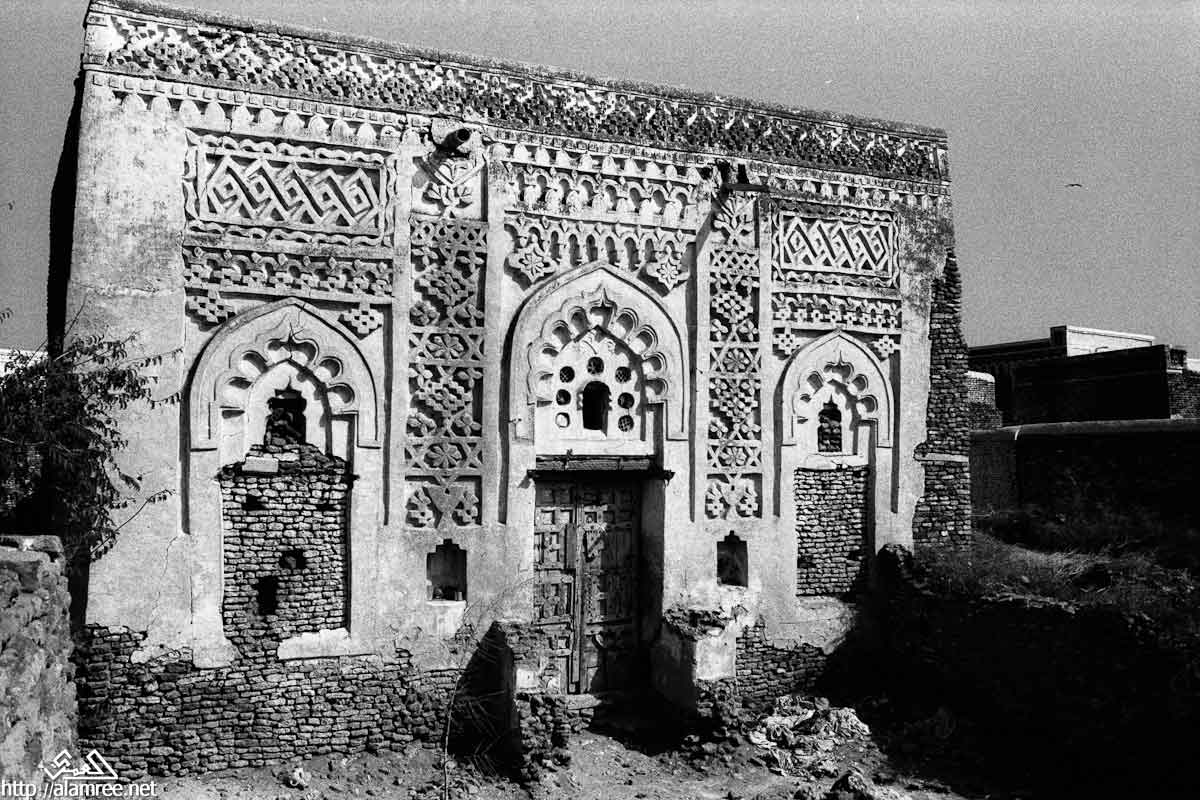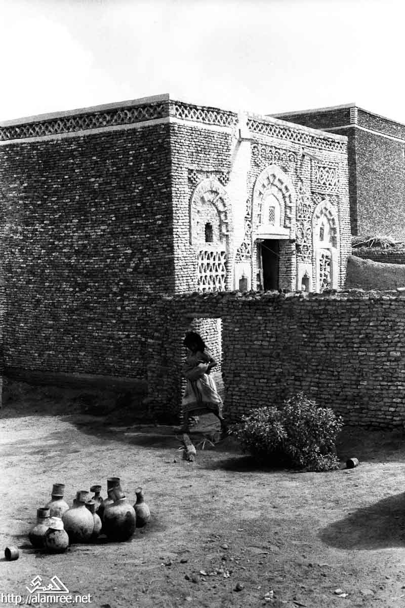 الحديده زبيد عام 1977م عرض لمبنى من الطوب اللبن عليه زخرفة