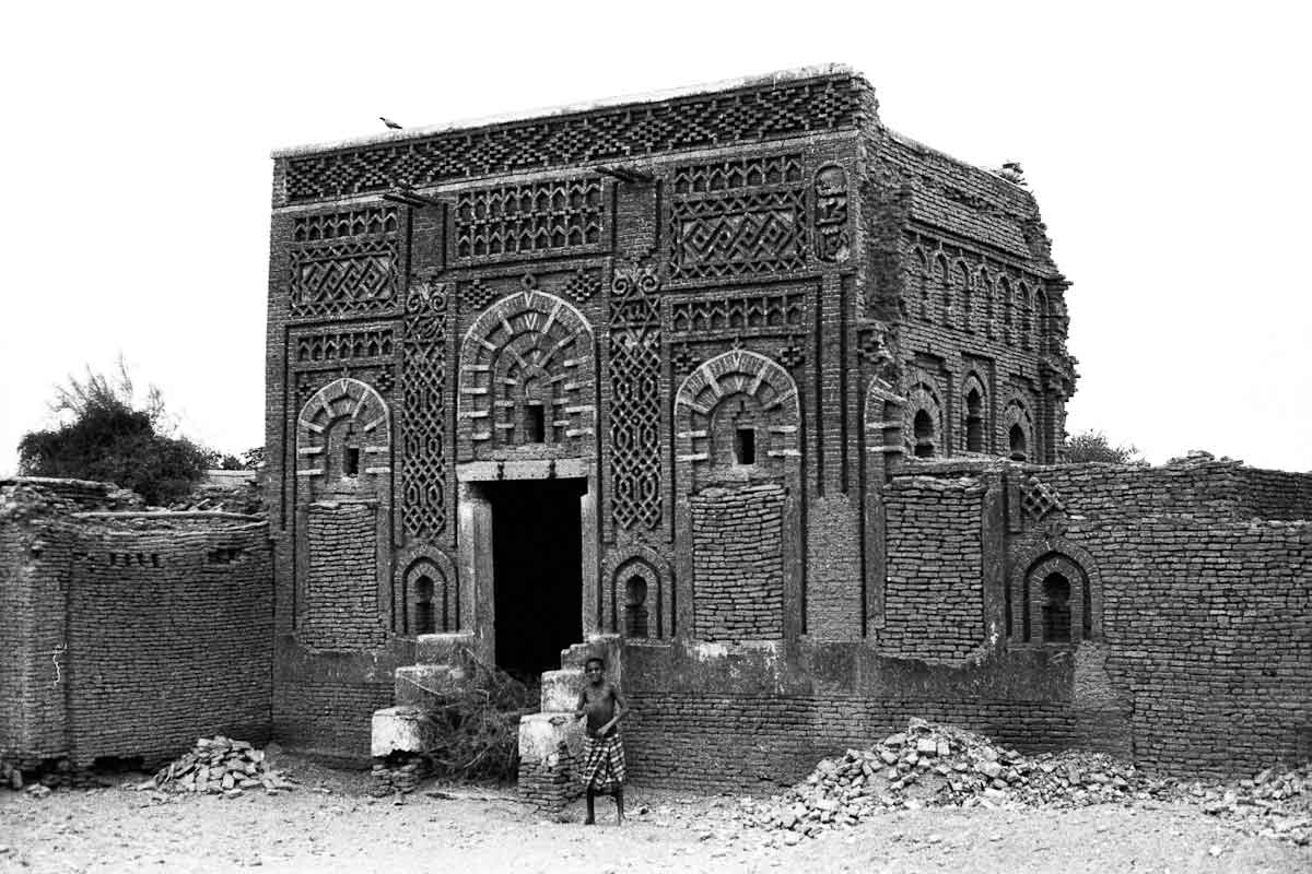 الحديده زبيد عام 1977م عرض لمبنى من الطوب اللبن عليه زخرفة.