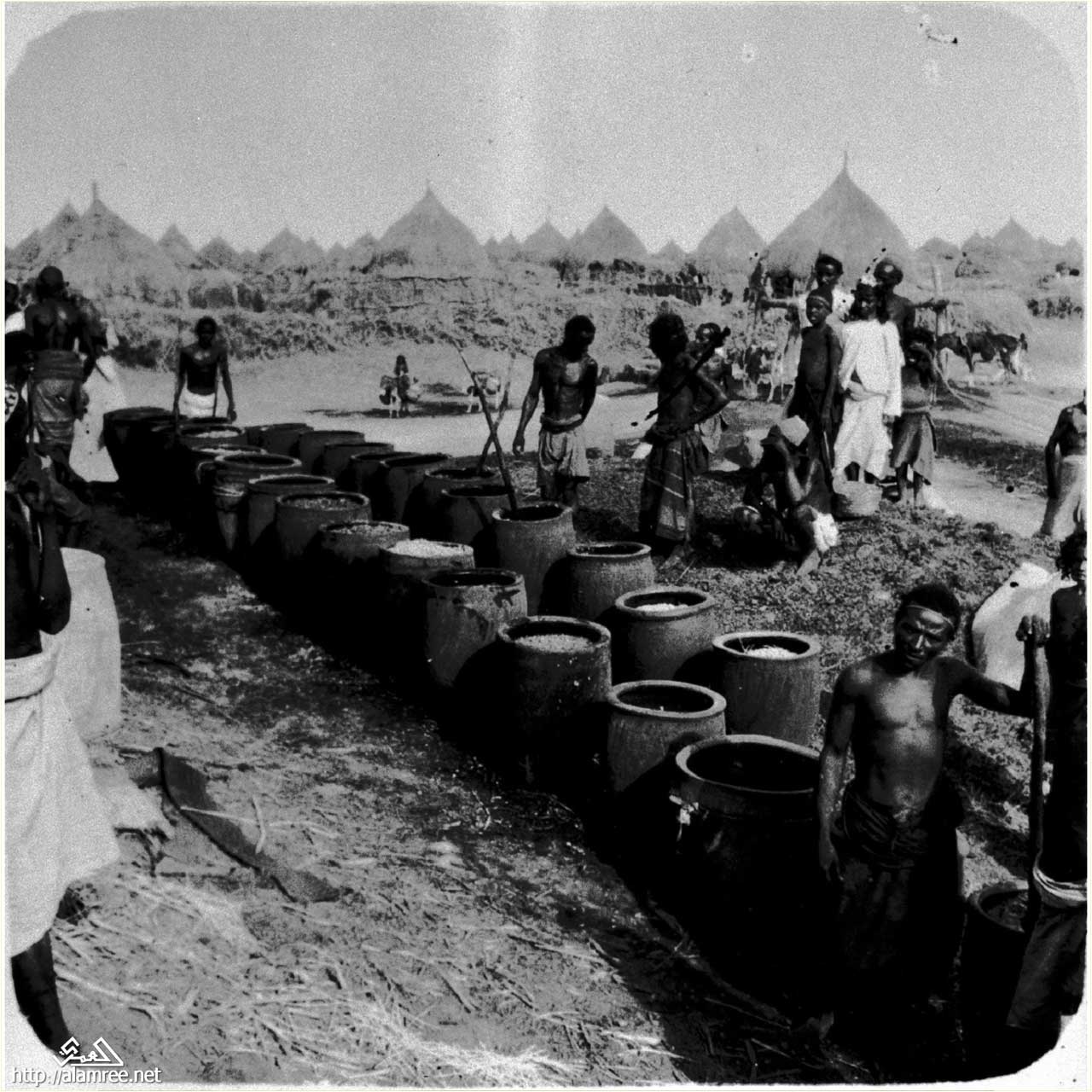 قرية درب مع صف مزدوج من الأواني من تخمر النيلي. |