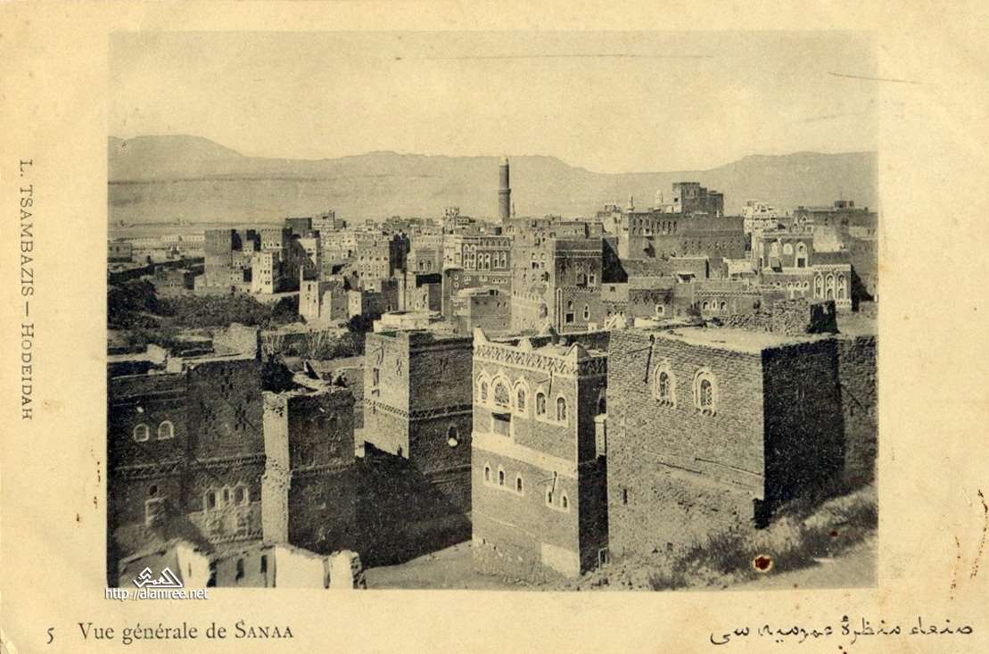 منظر عام لاجزاء من صنعاء في بطاقة بريدية من بداية القرن الماضي |