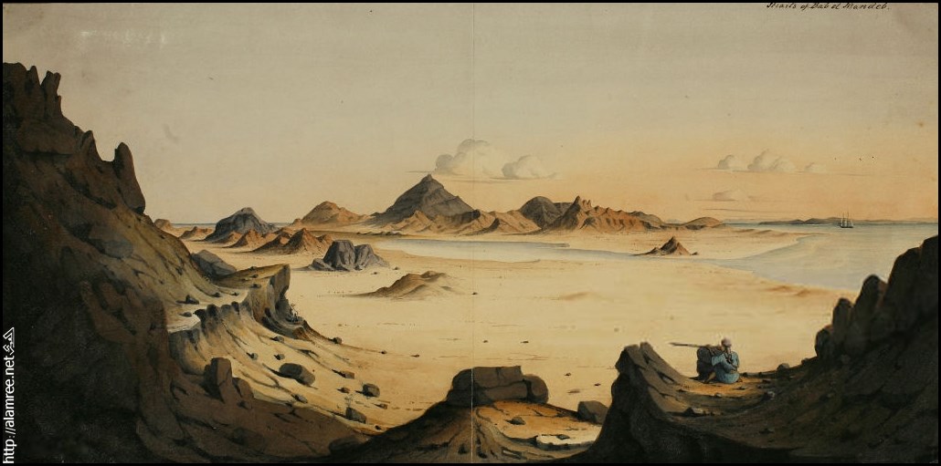 مضيق بال المندب ، عا م 1830م (تصوير روبرت كيرك / الجمعية الجغرافية الملكية |