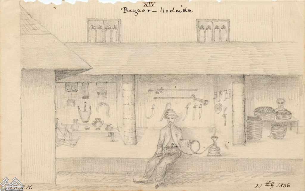 الحديدة - بازار - الحديدة، اليمن، 1836. (تصوير