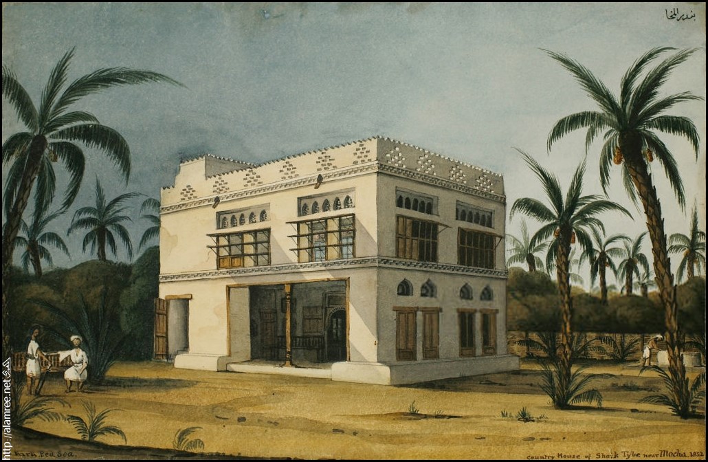 منزل ريفي لشيخ طيب ، بالقرب من المخاء ، اليمن. 1832م تصوير روبرت كيرك / الجمعية الجغرافية الملكية |