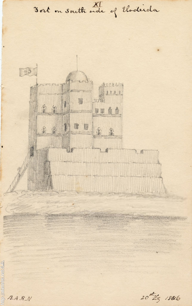 حصن على الجانب الجنوبي من الحديدة، اليمن، 1836. (تصوير ب.أ.ر. نيكلسون