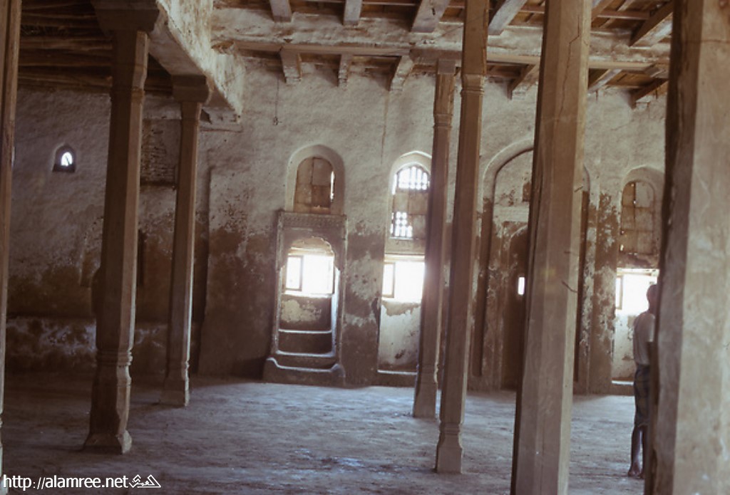 داخل مسجد الشاذلي اعمدة من خشب الساج |
