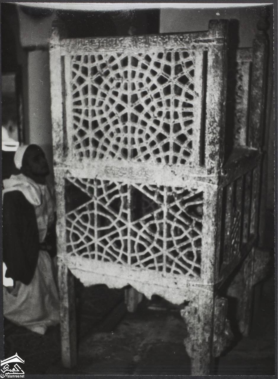 [خزانة من الخشب المخرم تقع داخل غرفة بها