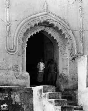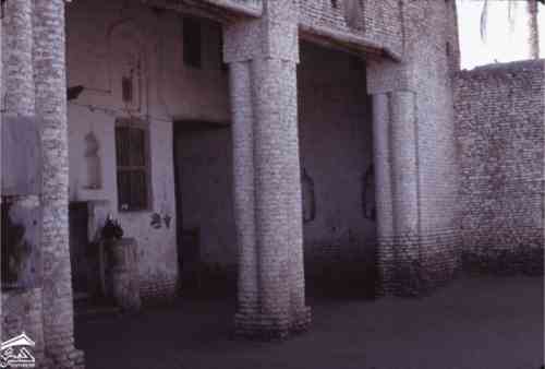 "اليمن . زبيد". [مدخل مبنى: تقدم تحت أعمدة البناء].